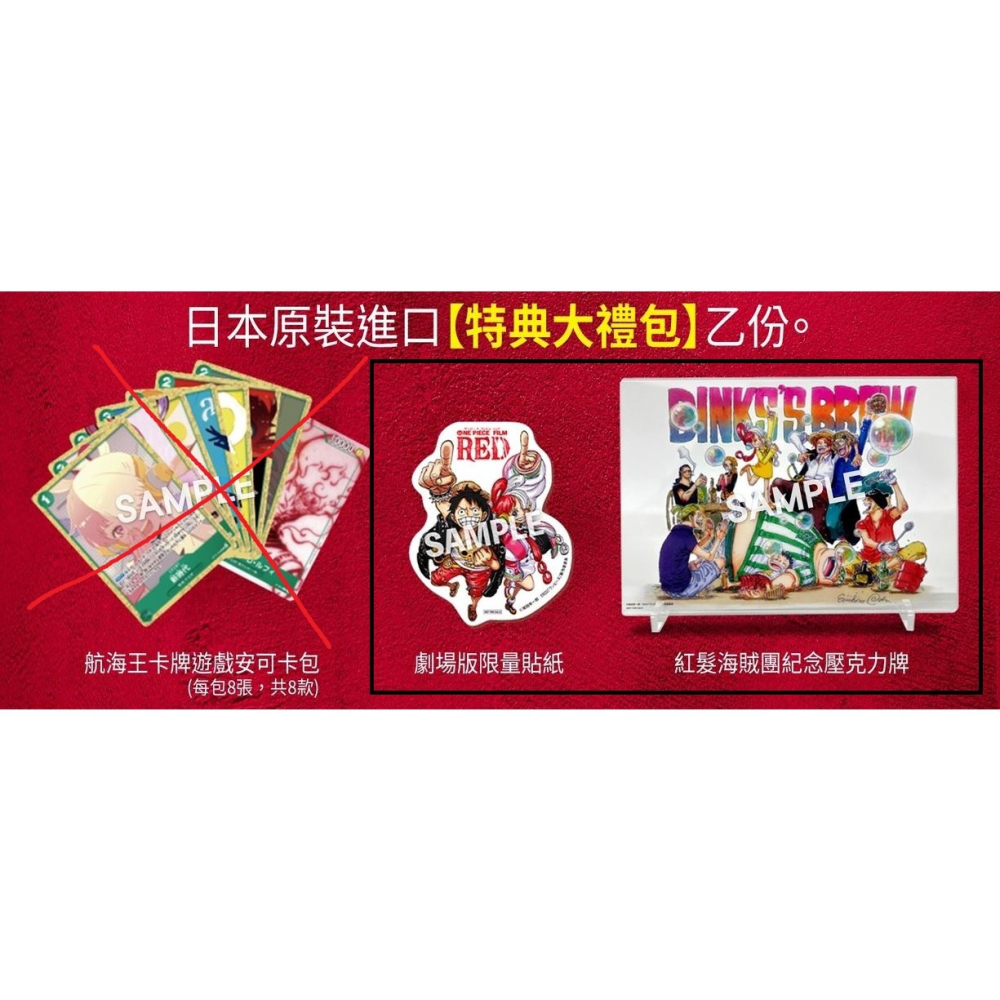 全新 日本原裝 ONE PIECE 航海王:電影劇場版 紅髮歌姬 特典 紅髮海賊團紀念壓克力牌 + 限量貼紙 無遊戲安可卡包