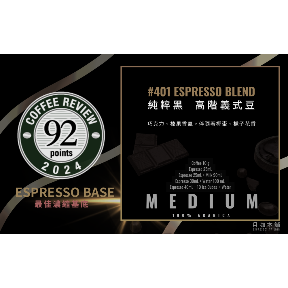 🔥暢銷得獎高階義式豆 | #401堅果巧克力調 CR92分