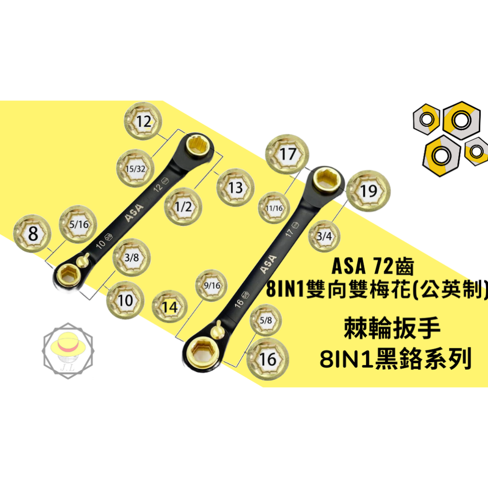 台灣製造『72齒12面專利不傷螺栓』八合一雙梅花『雙向』『黑鉻電鍍』棘輪扳手