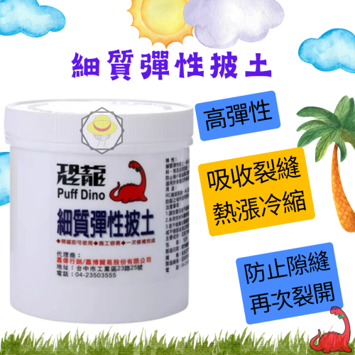 恐龍細質彈性披土具有高彈性,能吸收裂縫的熱脹冷縮,防止細小裂縫再次開裂,且有提高油漆粉刷整體性之功能。