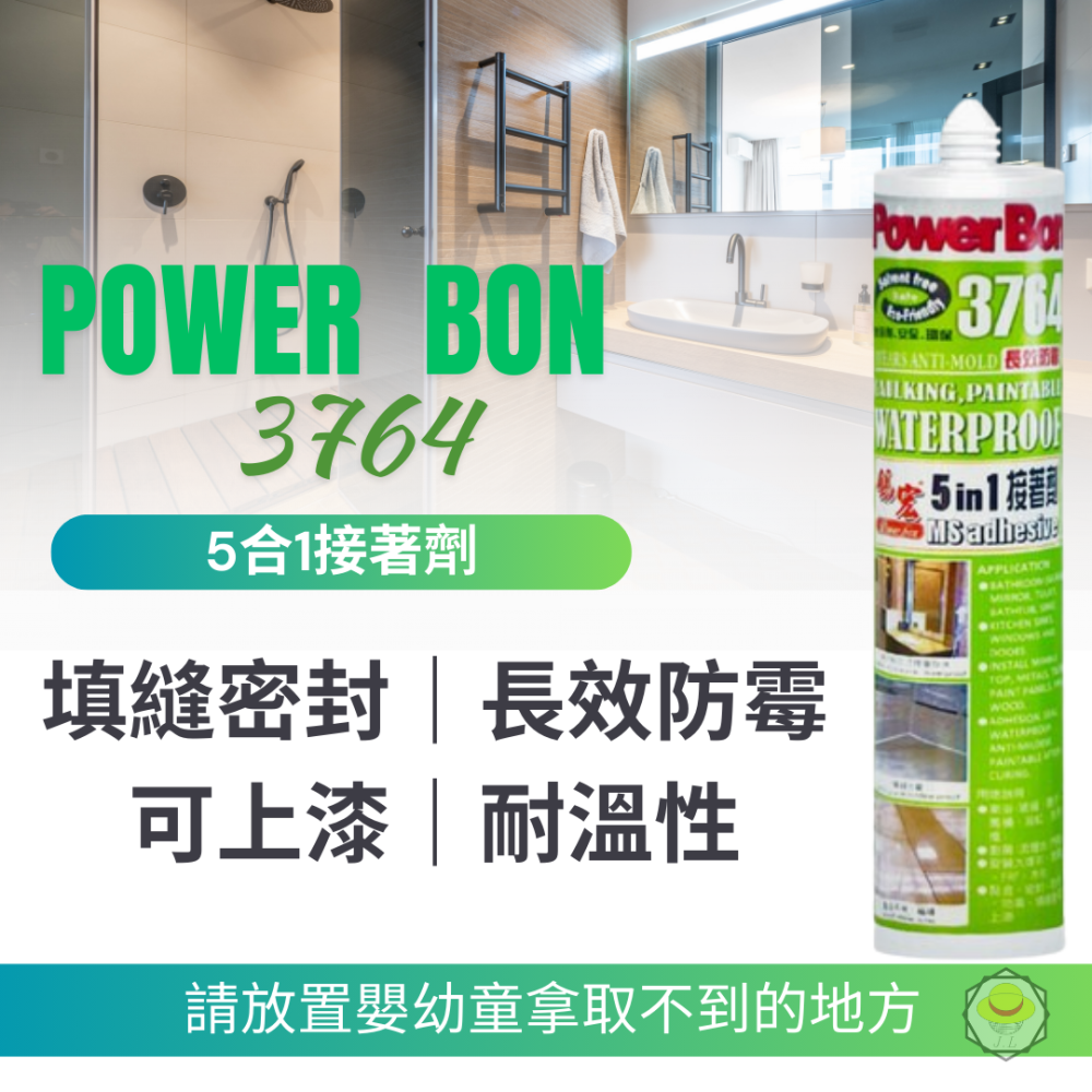 PowerBon® 5 in 1 MS 黏合劑無油,不污染基材,長效防黴,耐-40°F~200°F。