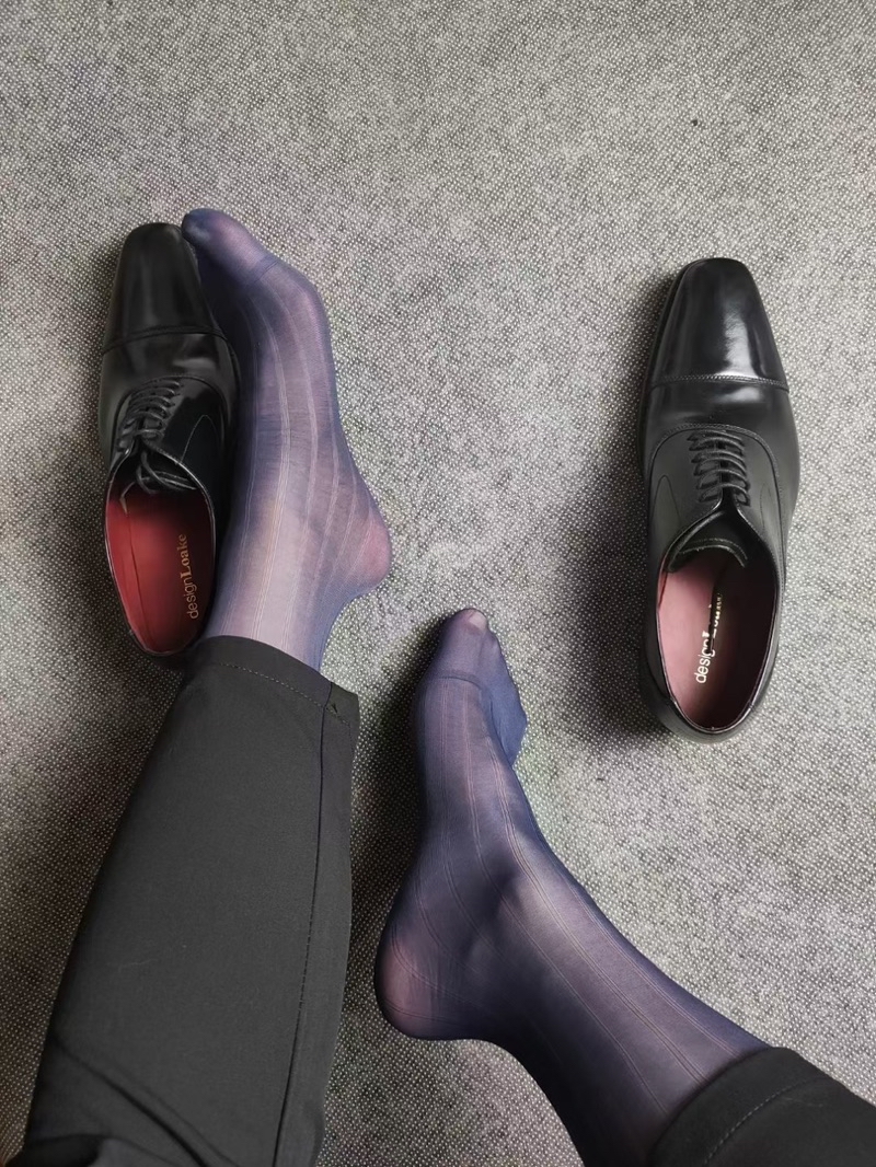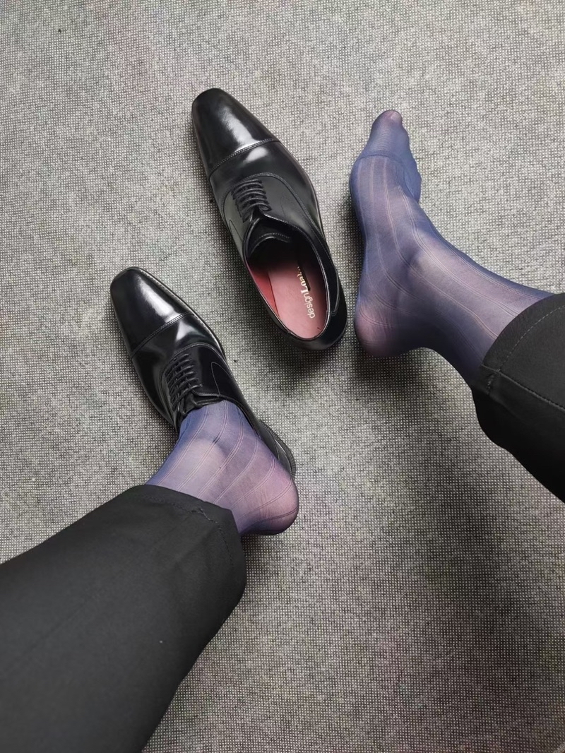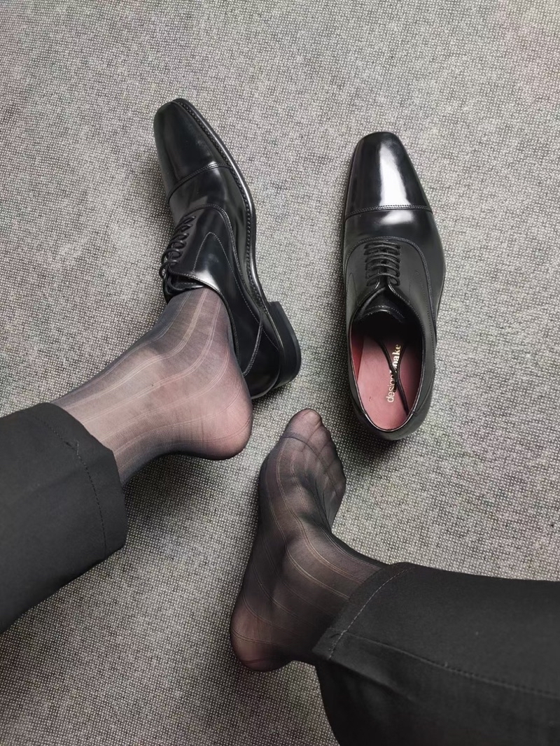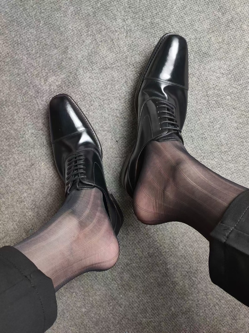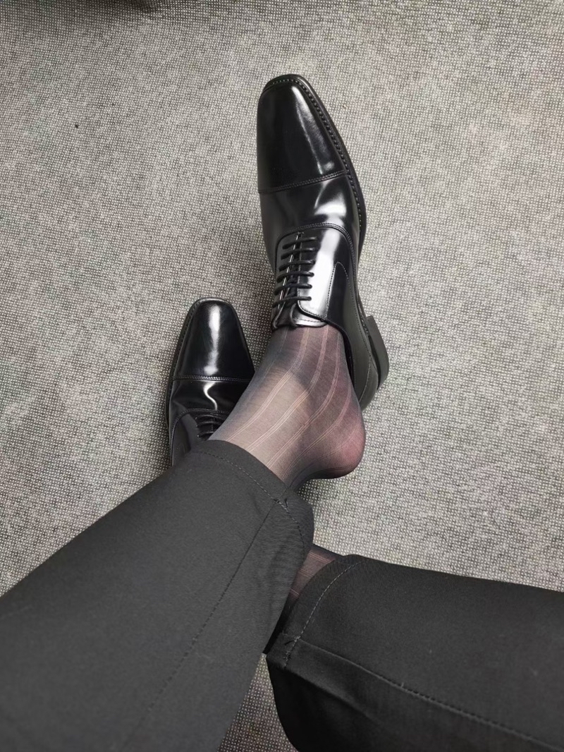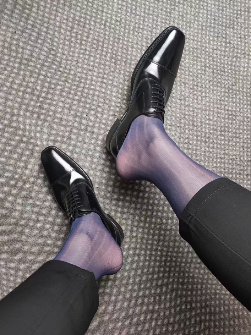 非專業賣家自己帶貨,此款為寬條紋絲質微透款,穿著舒適,喜歡絲襪材質的襪子,這款最適合您~❤️