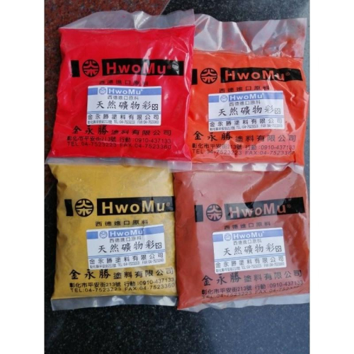 天然礦物粉 每包 顏色: 紅色 (180g) 調色能力3-4倍 黃色(180g) 調色能力2-3倍 綠色(240g) 調色能力2倍 藍色(450g)