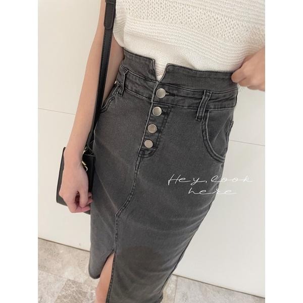 #牛仔裙 #長裙 #開衩裙 #V口牛仔裙 #四釦牛仔裙 #鐵灰色