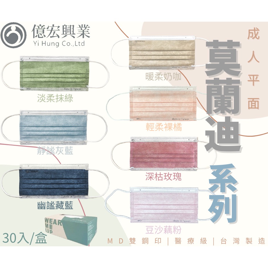 億宏 成人平面醫用口罩 莫蘭迪色系 30入/盒