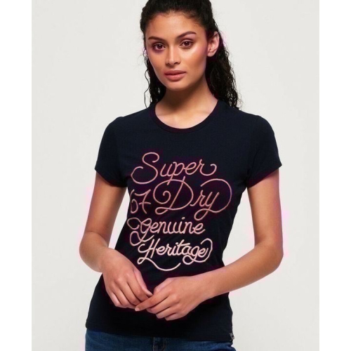 經典T恤的女性風格,正面飾有漸變色Superdry刺繡徽標,圓領和短袖。這款醒目T恤的下擺帶有Superdry徽標標籤。搭配經典的藍色牛仔褲,打造永恆風格。