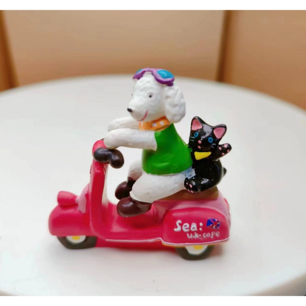 (高品質樹脂)摩托車 小狗 黑貓 小狗黑貓 騎機車 機車 兜風 法式小狗 zakka 雜貨 園藝 拍攝 公仔