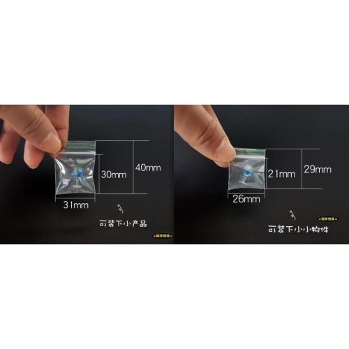 https://s-cf-tw.shopeesz.com/file/8e7dd81b51931a895685e5cb054eed7f 小巧別緻的迷你透明封口小袋子 品名:迷你透明封口小袋子 規格:圖片有標注著尺寸 材質: 塑料 重量:0.3g 價格與數量說明:此價格為100個 🍁尺寸:如圖所示 🍁材質:塑料 【提      醒】 ①非幼兒玩具,請注意避免幼兒誤食或誤傷 ②本產品只是玩具模型,不是真人使用的 ③搭配建議:具體產品具體搭配。請參照產品所標的實際尺寸進行判斷,部分1:6,1:12,甚至1:18也可能適合。認真察看主圖中尺寸標示,不能憑想像,自行判斷產品是否合乎自己的需求。 🍁下標前請先詢問商品數量🍁 🍁得標請勿棄標.若棄標一切依照棄標流程處理並列入黑明單 ※ 🍁由於拍攝時天氣、角度、光線等的差異和螢幕等等客觀因素會造成色差,以「實品色系」為主。介意者請勿下標,下標後即表示同意賣場規定,謝謝~~ 🍁商品多為手工製品,均有「可能」稍有「掉漆」「染漆」或者「小刮花」實屬正常哦,介者慎拍!(出貨前均會檢查及儘量處理) 🍁商品瑕疪過於嚴重的商品一定會事先告知顧客的,請放心! 🍁對於商品品質高求極高,即「完美主義者」請勿下標哦!! 🍁商品以販售「規格」為主,不包含其他拍攝道具哦!!