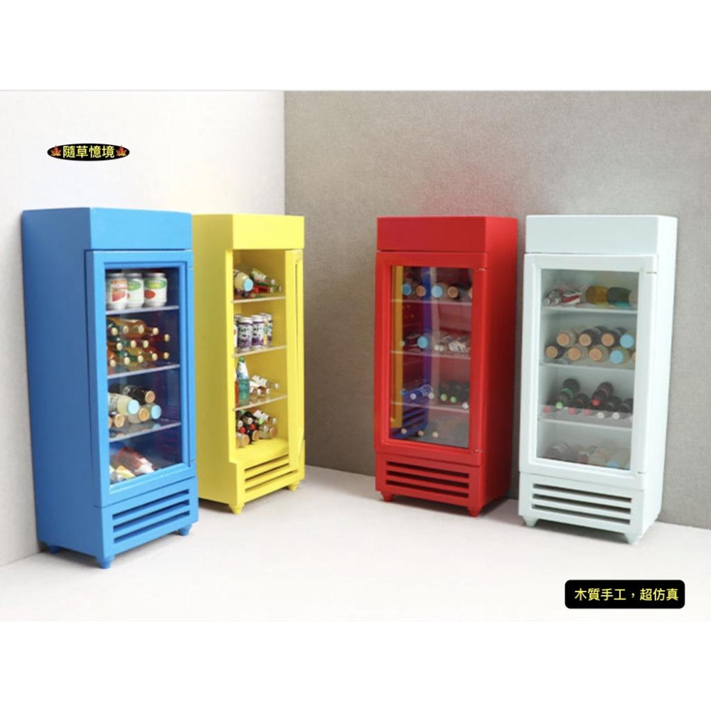 (多色木質手作)迷你仿真 冷飲櫃 飲料櫃 冰櫃 立式 單門 冰櫃 冰箱 娃娃屋 袖珍 食玩 微縮 微景觀 模型