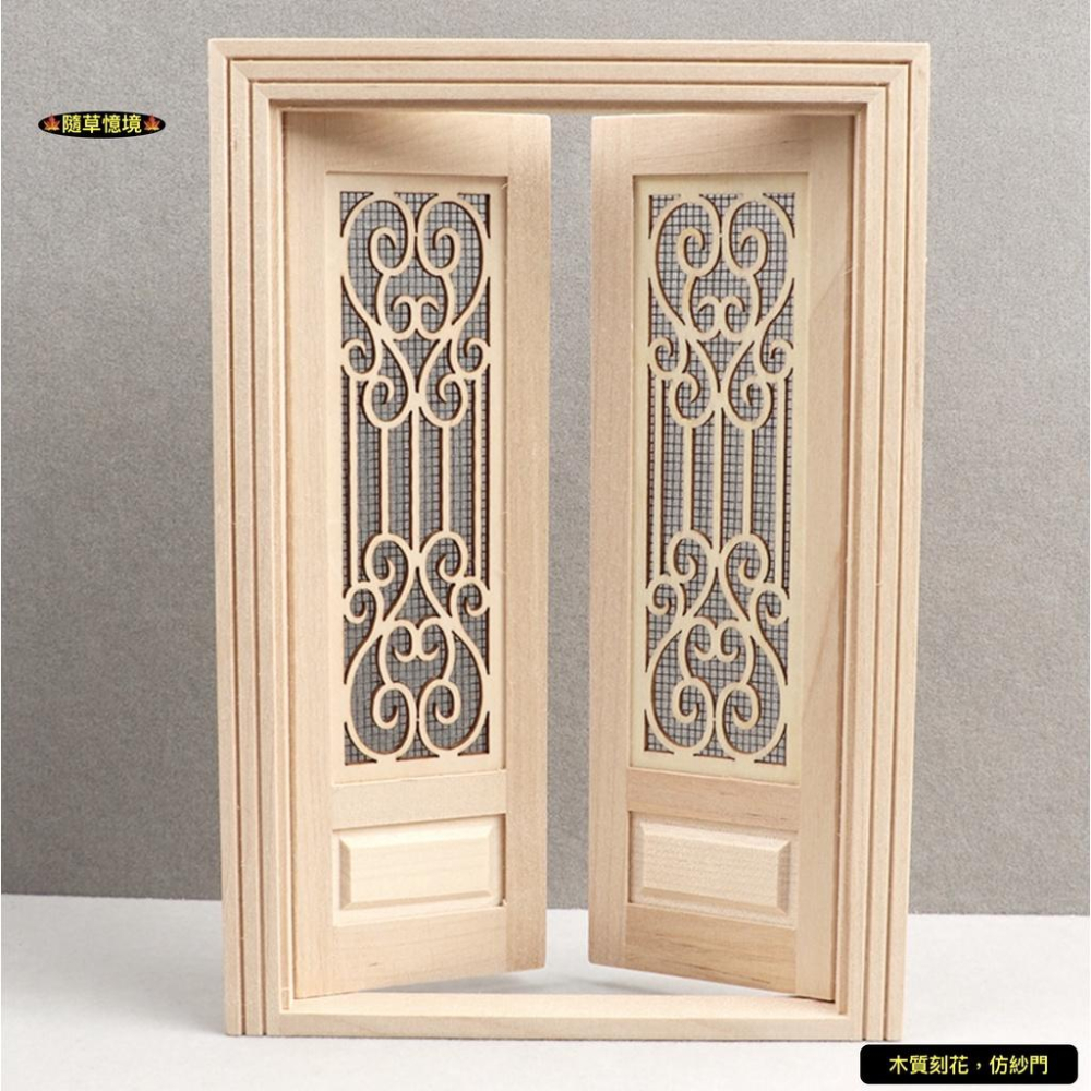 (精緻木工)迷你仿真 雙開 雕花 紗門 木門 大門 可自行上色 娃娃屋 袖珍 食玩 微縮場景 微景觀 模型