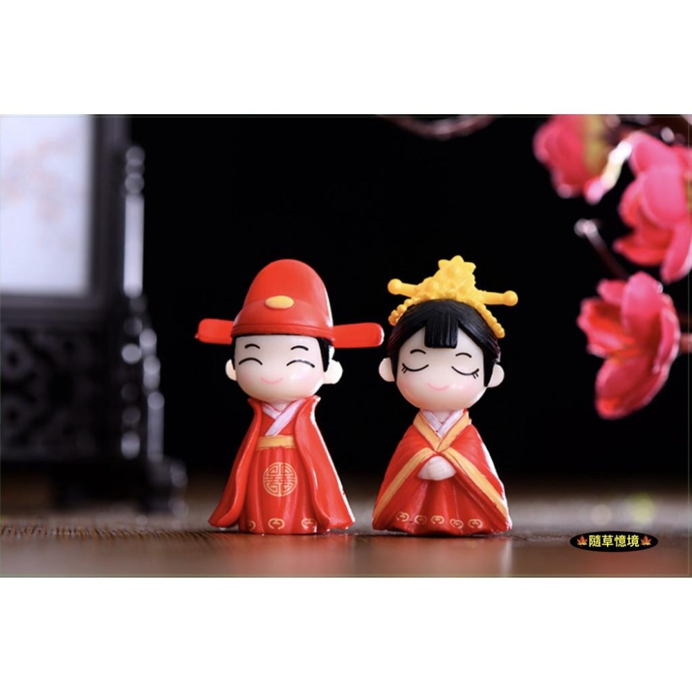 (2件套)迷你仿真 中國 古裝 婚慶 結婚 新郎 新娘 情侶 中國風 娃娃屋 袖珍 食玩 微縮 微景觀 模型