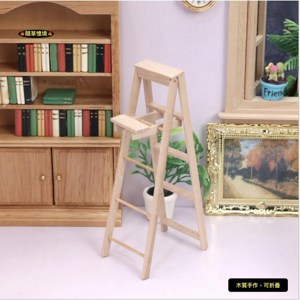 (木質可折疊)迷你仿真 梯子 折疊梯 書架 爬梯 樓梯 工作梯 娃娃屋 袖珍 食玩 微縮場景 微景觀 模型