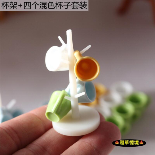 (多色1架4杯)迷你仿真 時尚 水杯 茶杯 茶杯架 水杯架 杯架 杯子 BJD 袖珍 食玩 微縮場景 微景觀 模型
