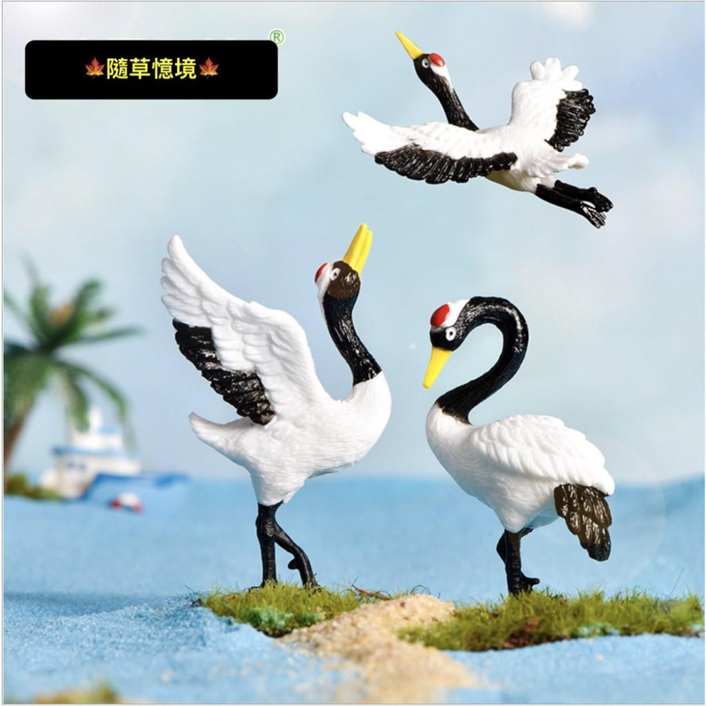 (3款式)仿真動物 丹頂鶴 鶴 仙鶴 鳥 中國風 固定棒 微景觀 盆景 多肉擺件 pvc塑料 diy 園藝 擺件