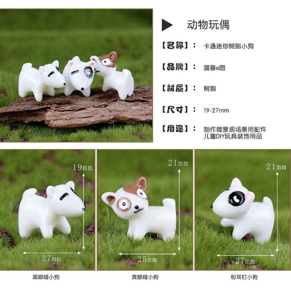 (3款)卡通 迷你 黑白 狗狗 小狗 犬 q版 牛頭梗 粉耳 黑眼圈 苔藓微景觀飾品DIY组装小擺件玩具