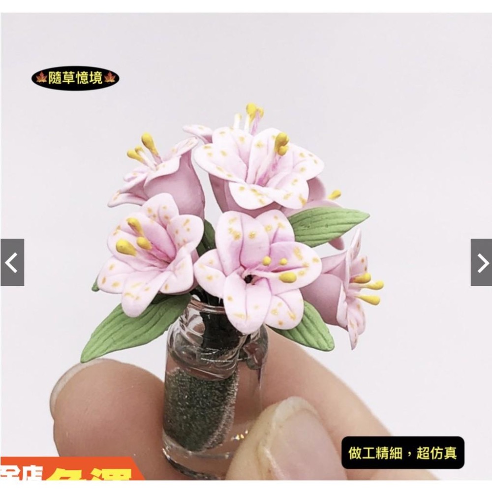 (高品質手工)迷你 玻璃 花瓶 百合花 花束 盆花 室內花 花 K113 花籃 娃娃屋 食玩 模型 微縮場景