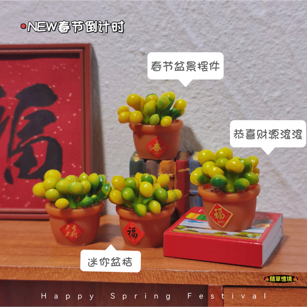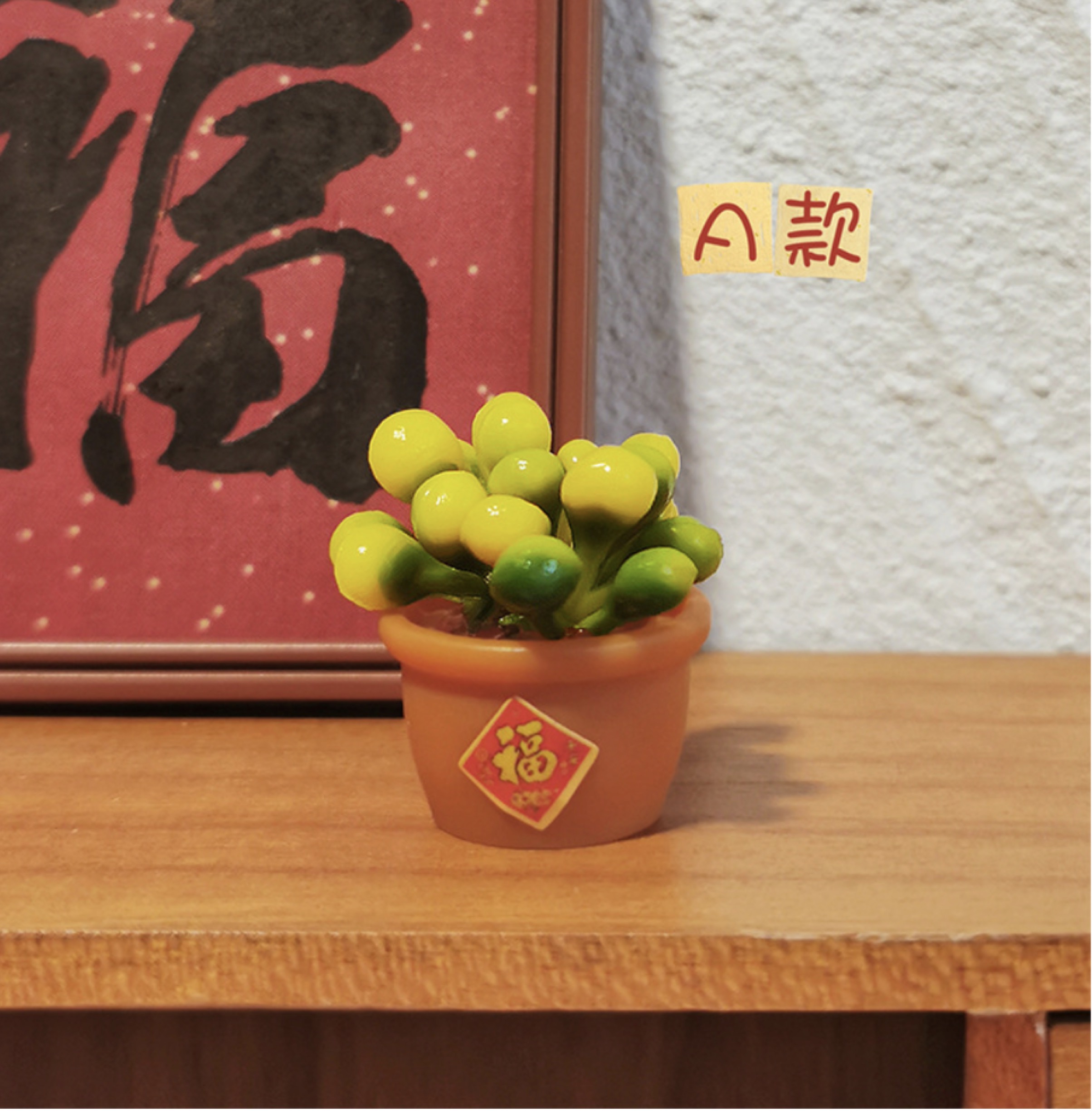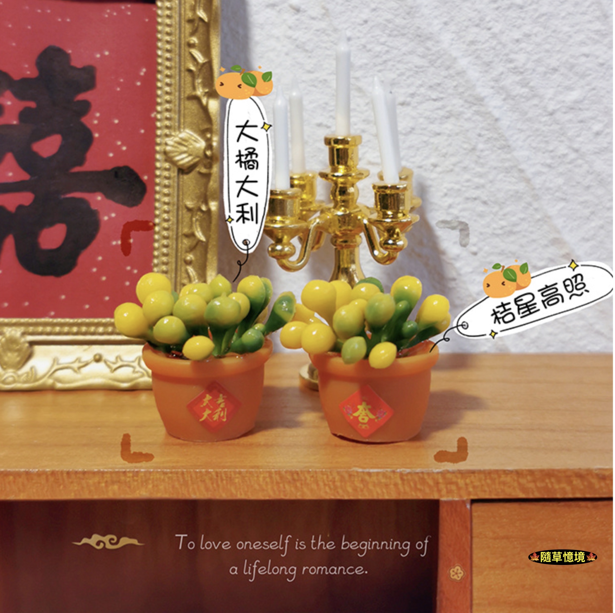 迷你仿真 金桔 盆栽 大吉大利 福 盆景 綠植 盆栽 K153 娃娃屋 袖珍 食玩 微縮場景 微景觀 模型