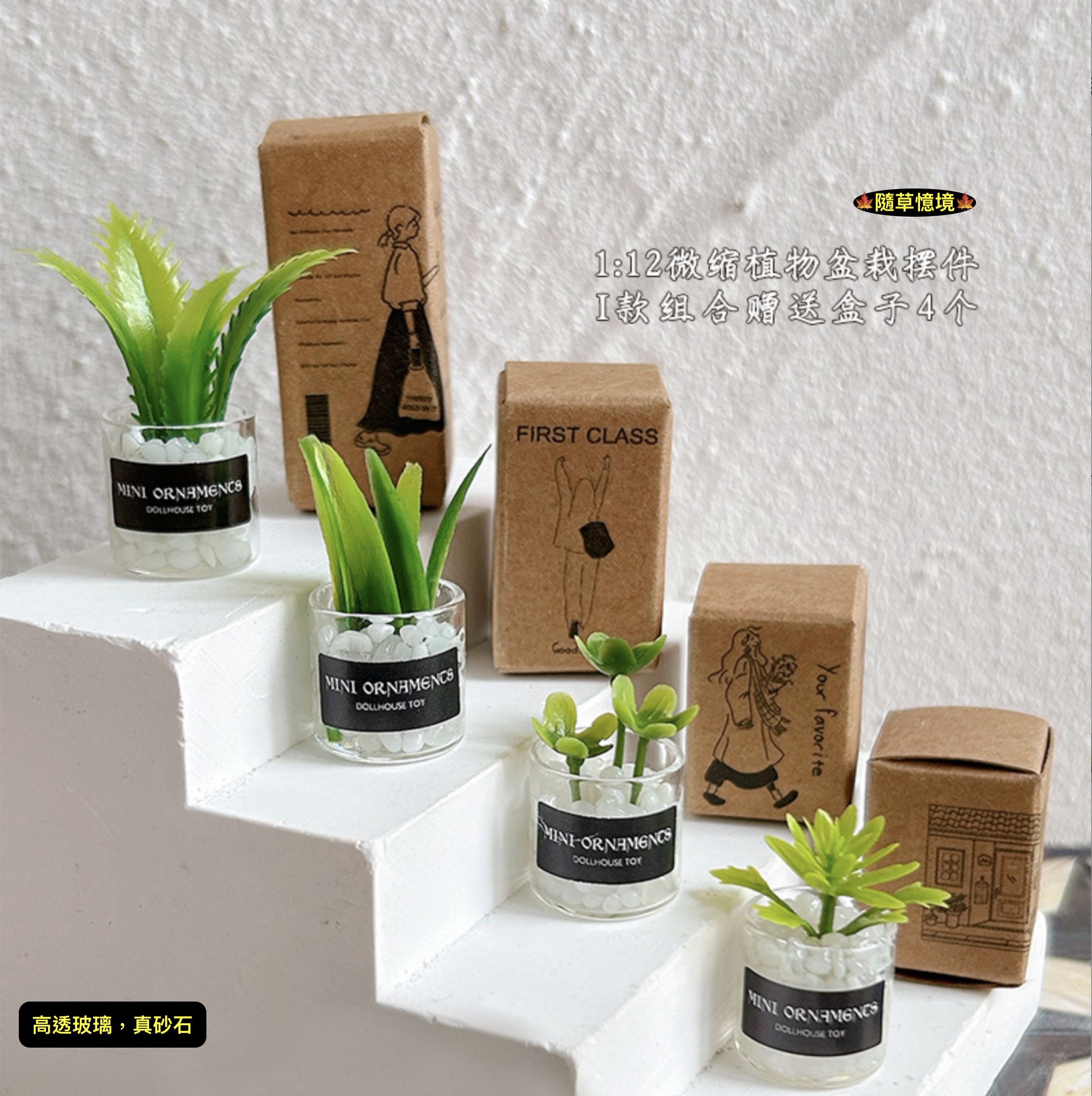 🍁材質:玻璃(盆)、砂石、塑料(花)