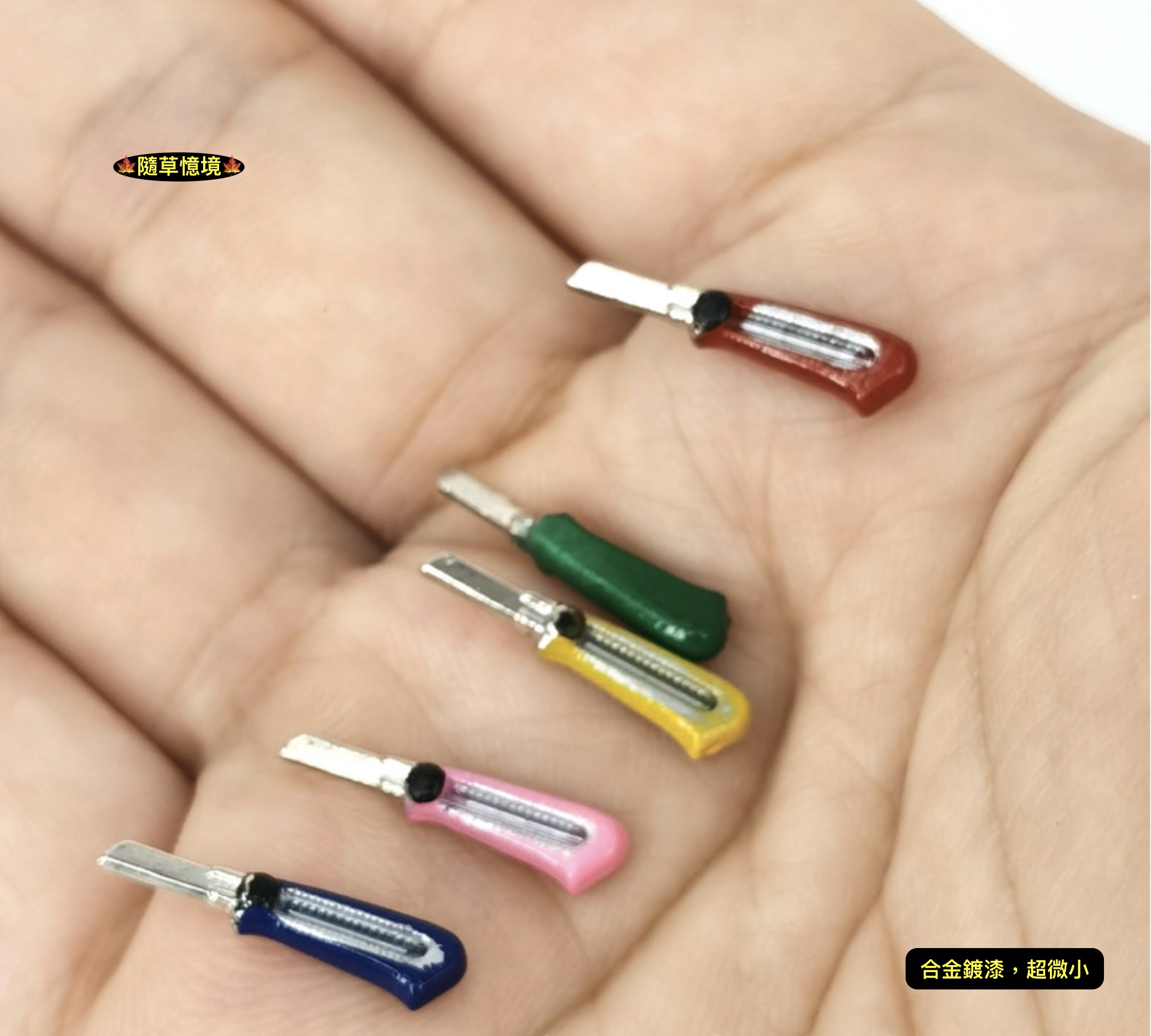 【說 明】 美工刀不能用來割東西,純擺件。袖珍手工品,可能有塗漆不勻、掉色的情況存在,以上情況不視作質量問題