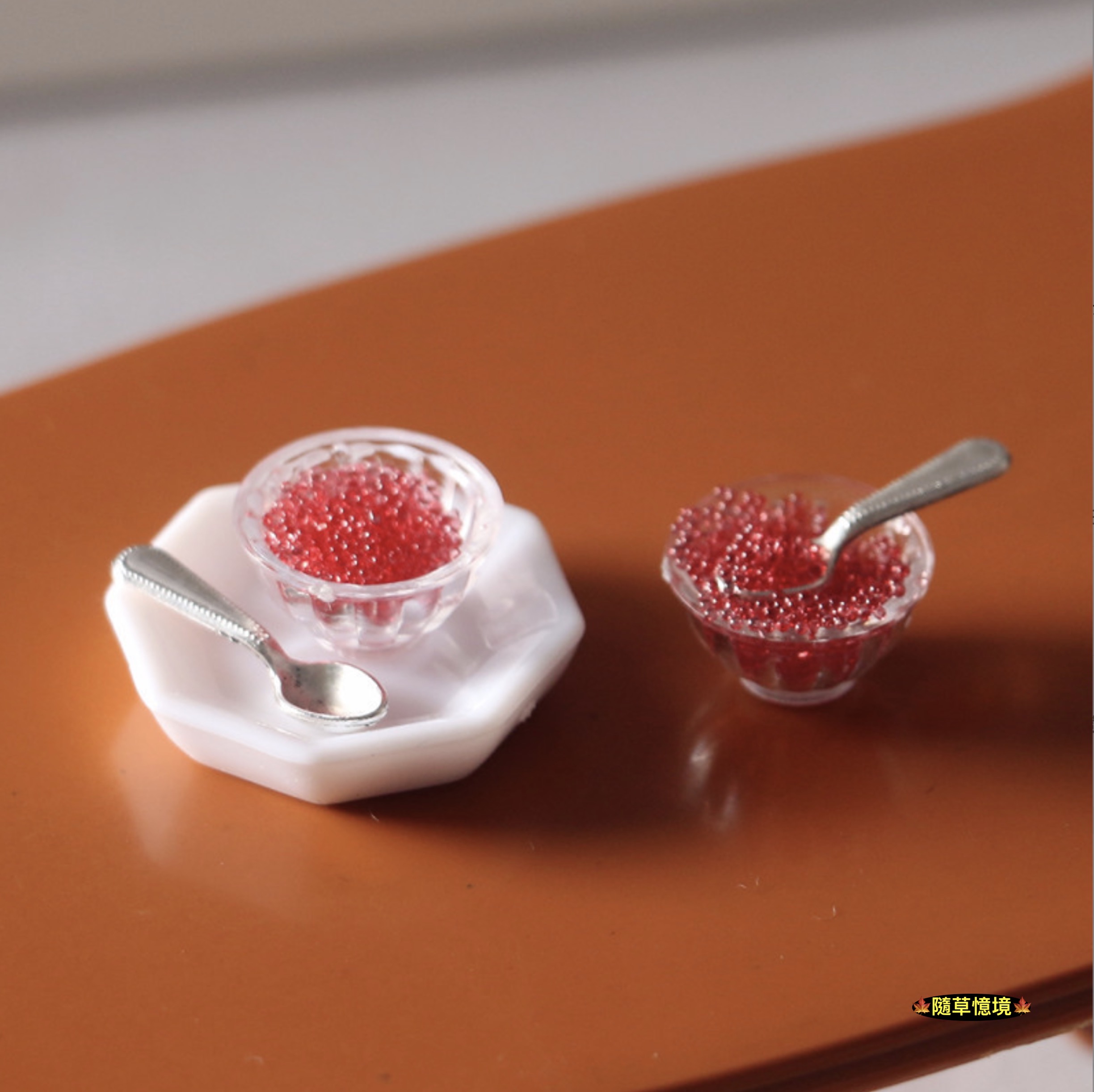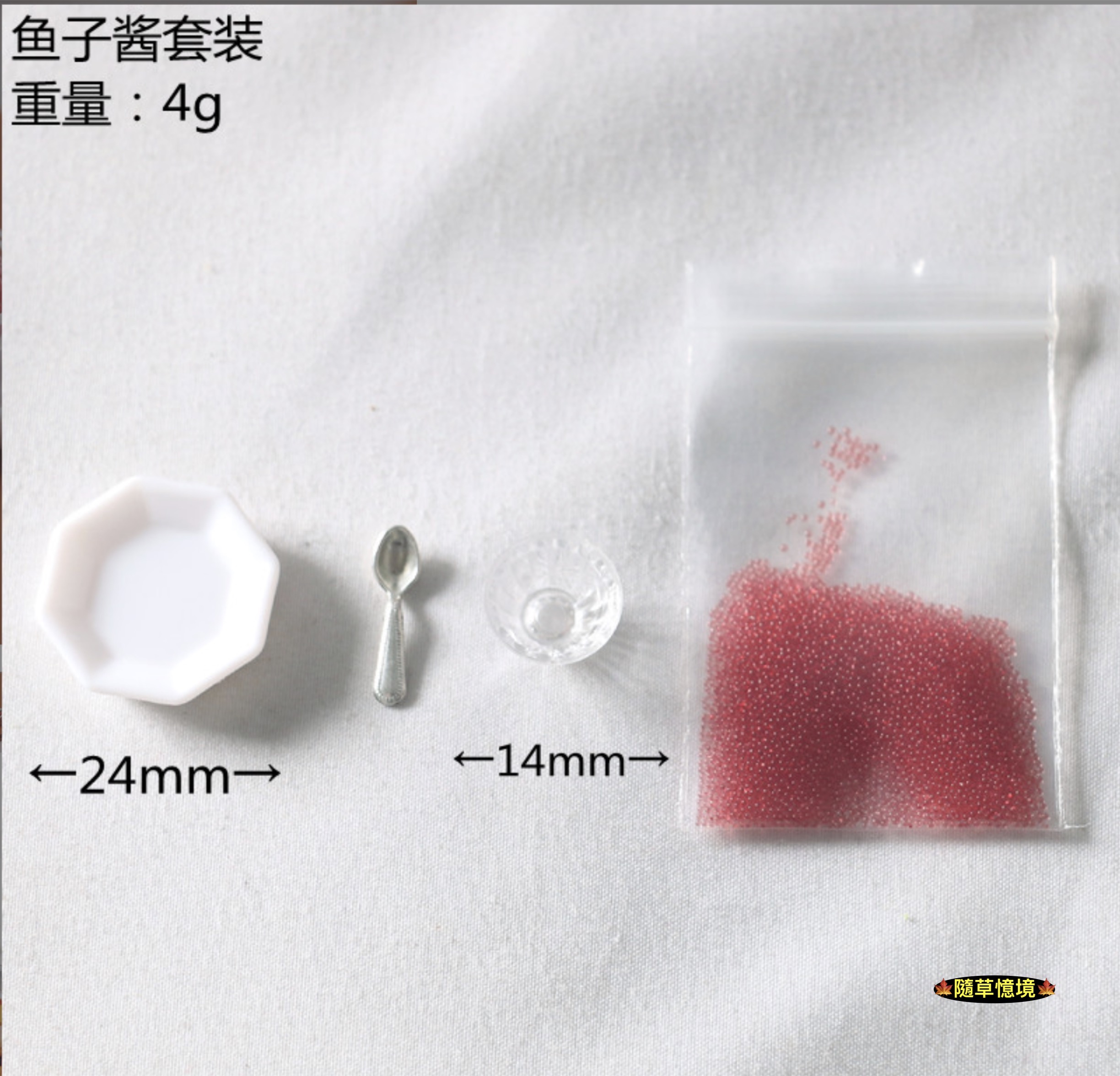 🍁一組入(1碗+1碟+1匙+1包魚子醬),元件均可分離,仿真魚子醬需diy自行倒入碗中
