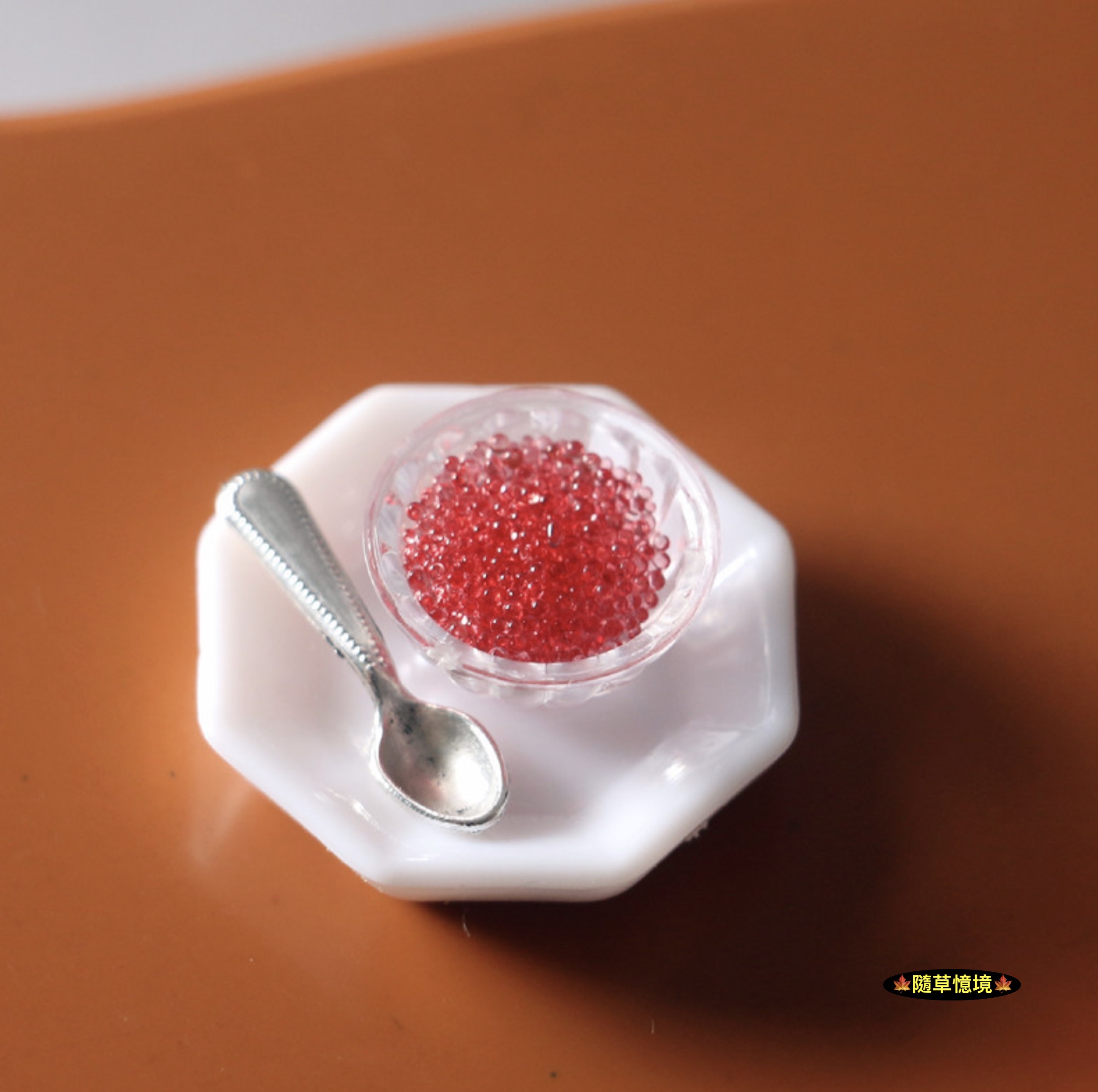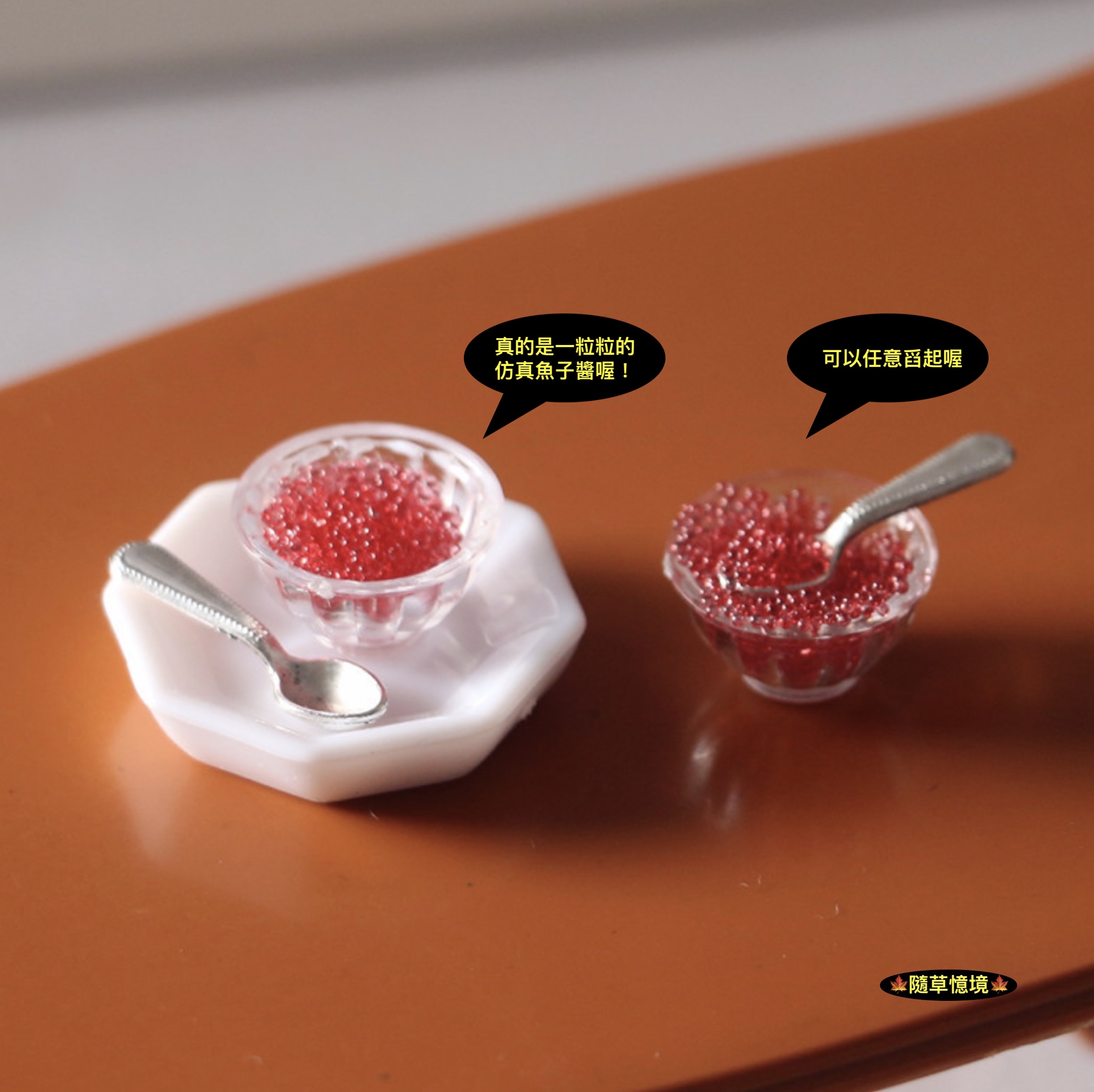 🍁🍁🍁全套4件套: 1碟+1匙+1碗+1包仿真魚子醬,魚子醬需diy自行放入碗中(顆粒極小,注意擺放及避免小孩/寵物誤食)🍁🍁🍁