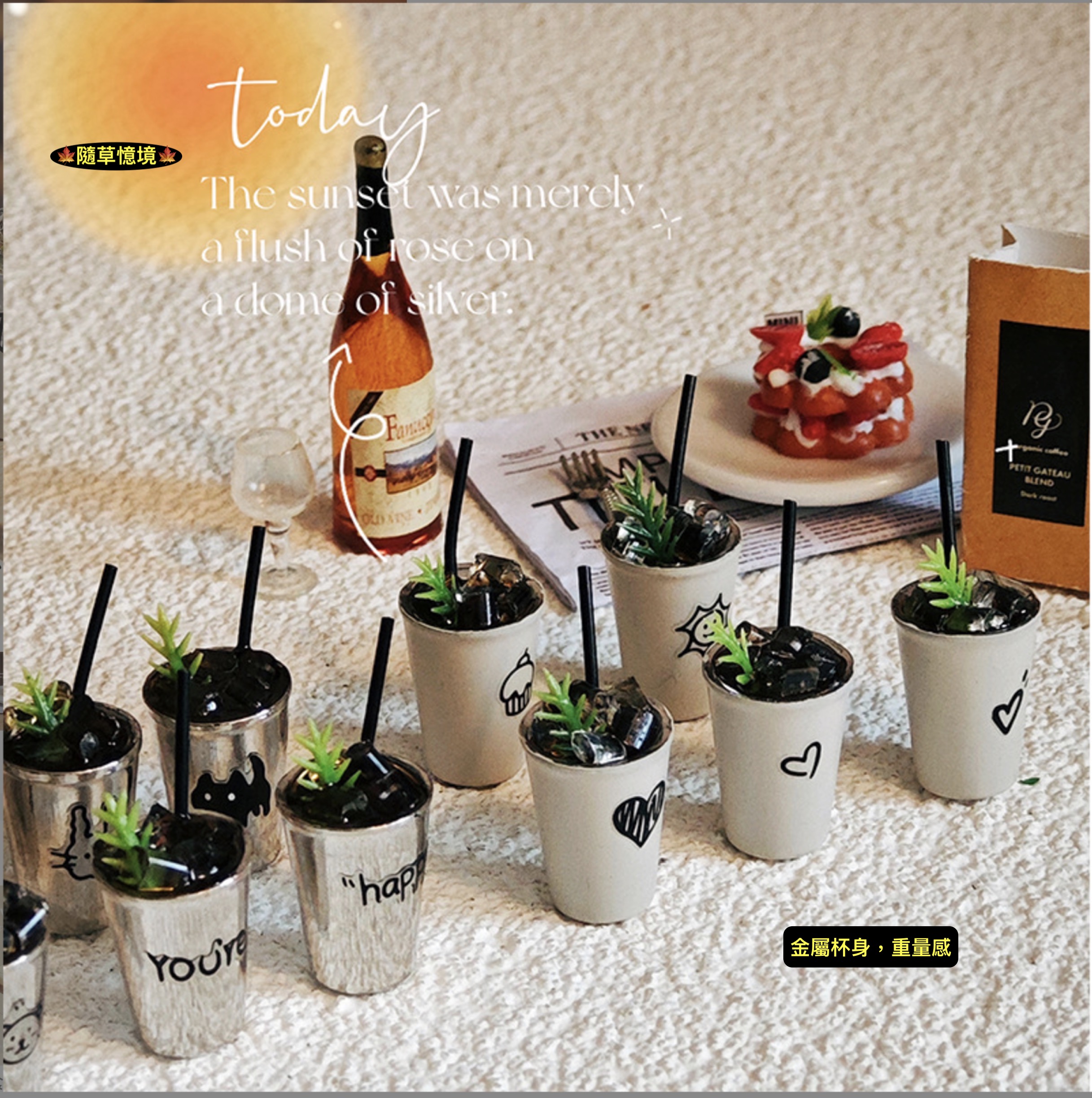 🍁材質:合金鍍漆(杯身)、樹脂(杯內物)