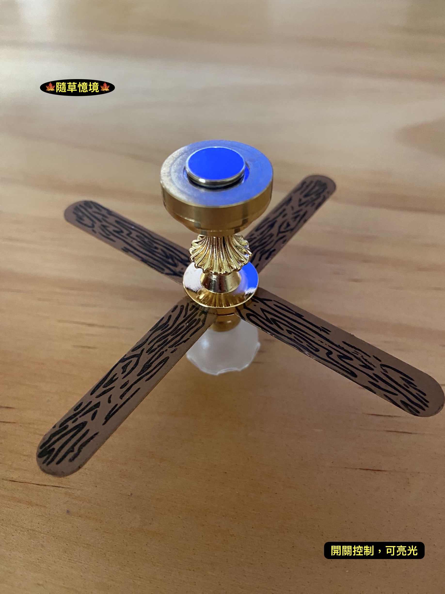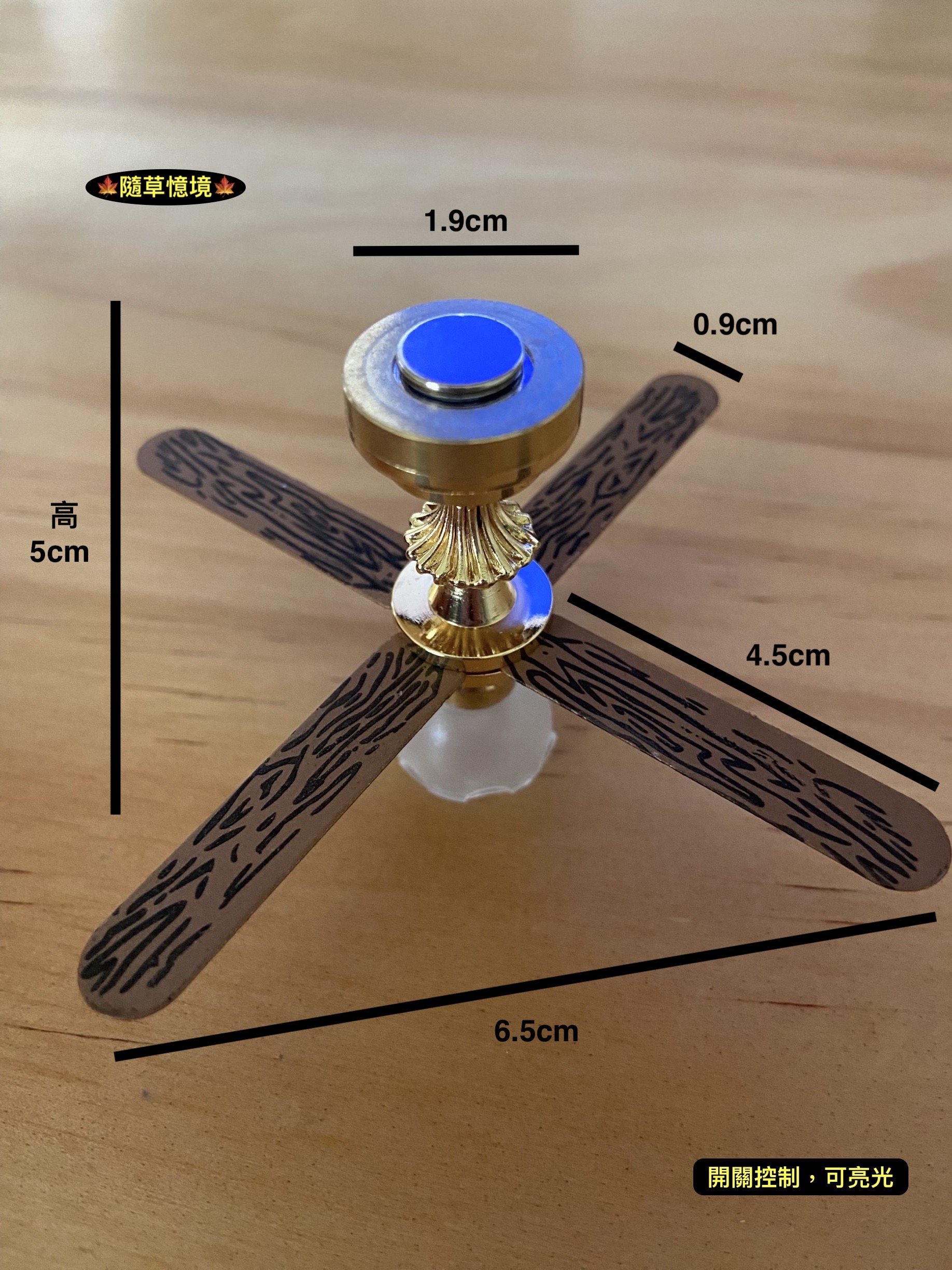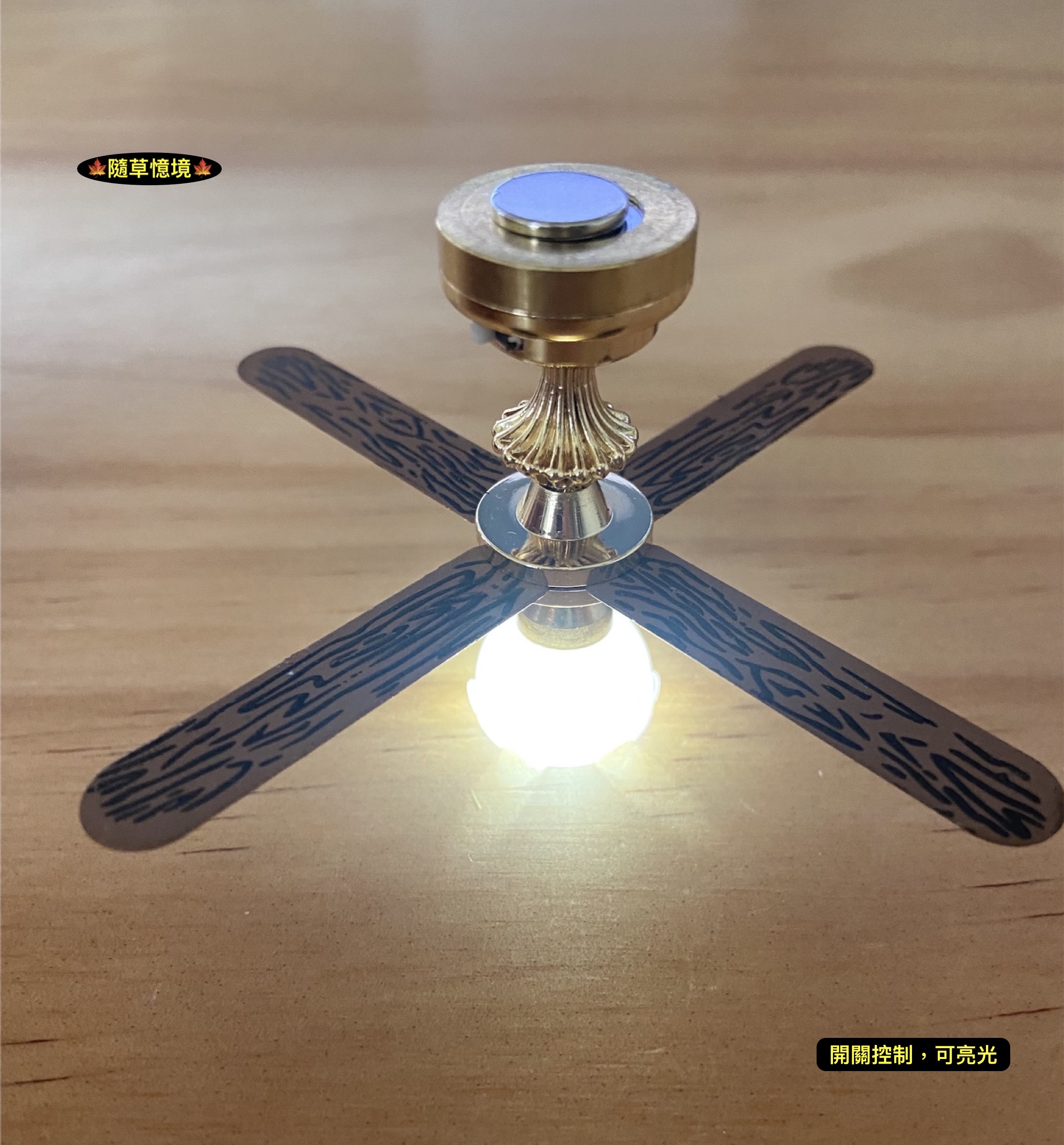 🍁說明:開關控制led燈開或關, 吊扇葉片「不可」旋轉,僅作靜態展示用。底部強力磁鐵可吸附於鐵質天花板
