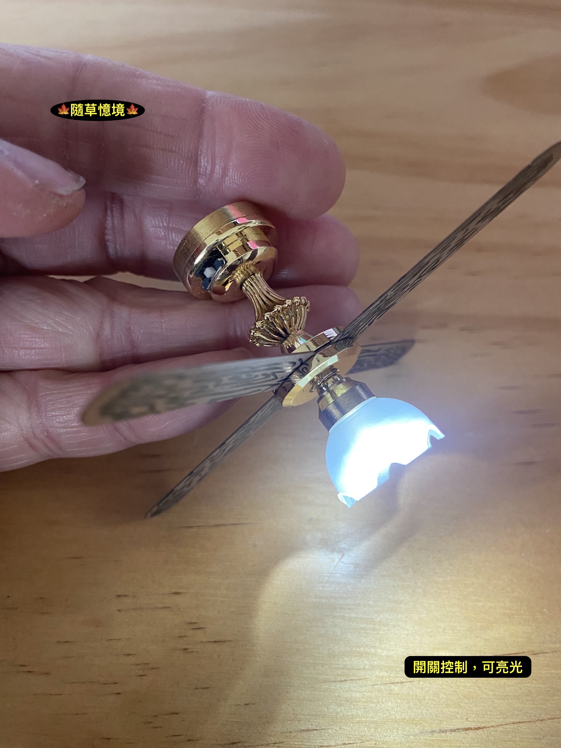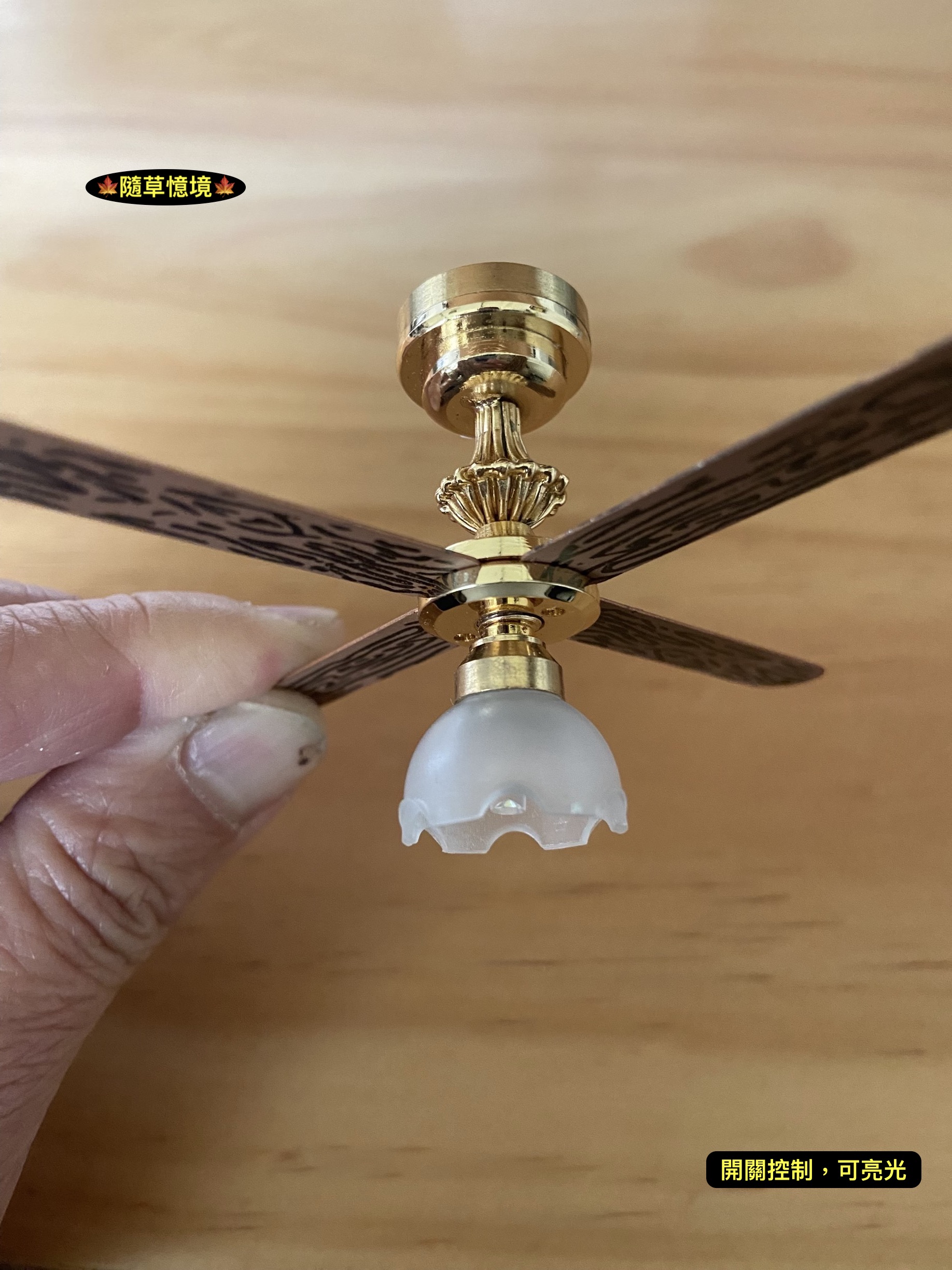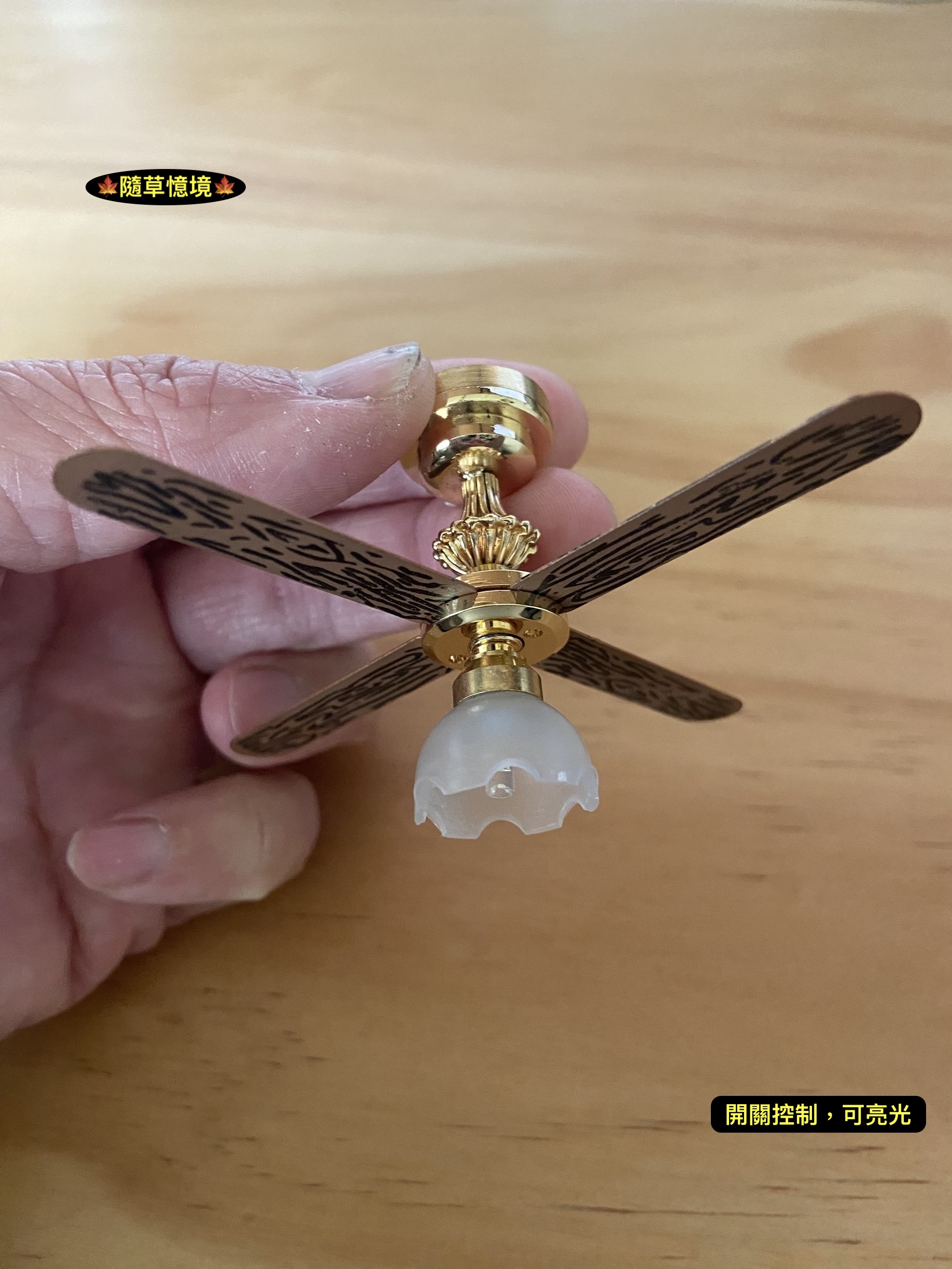 🍁說明:開關控制led燈開或關, 吊扇葉片「不可」旋轉,僅作靜態展示用。底部強力磁鐵可吸附於鐵質天花板