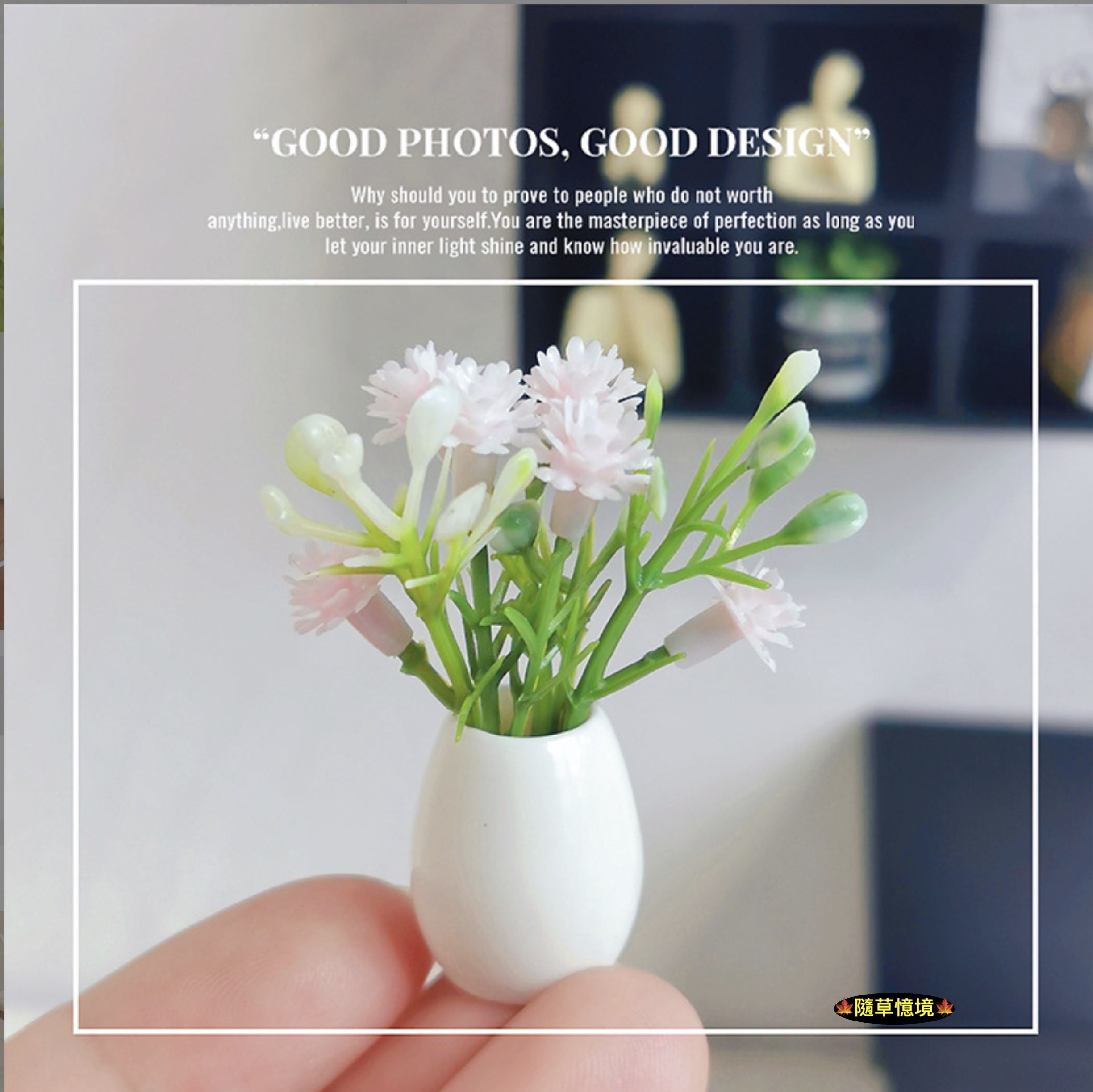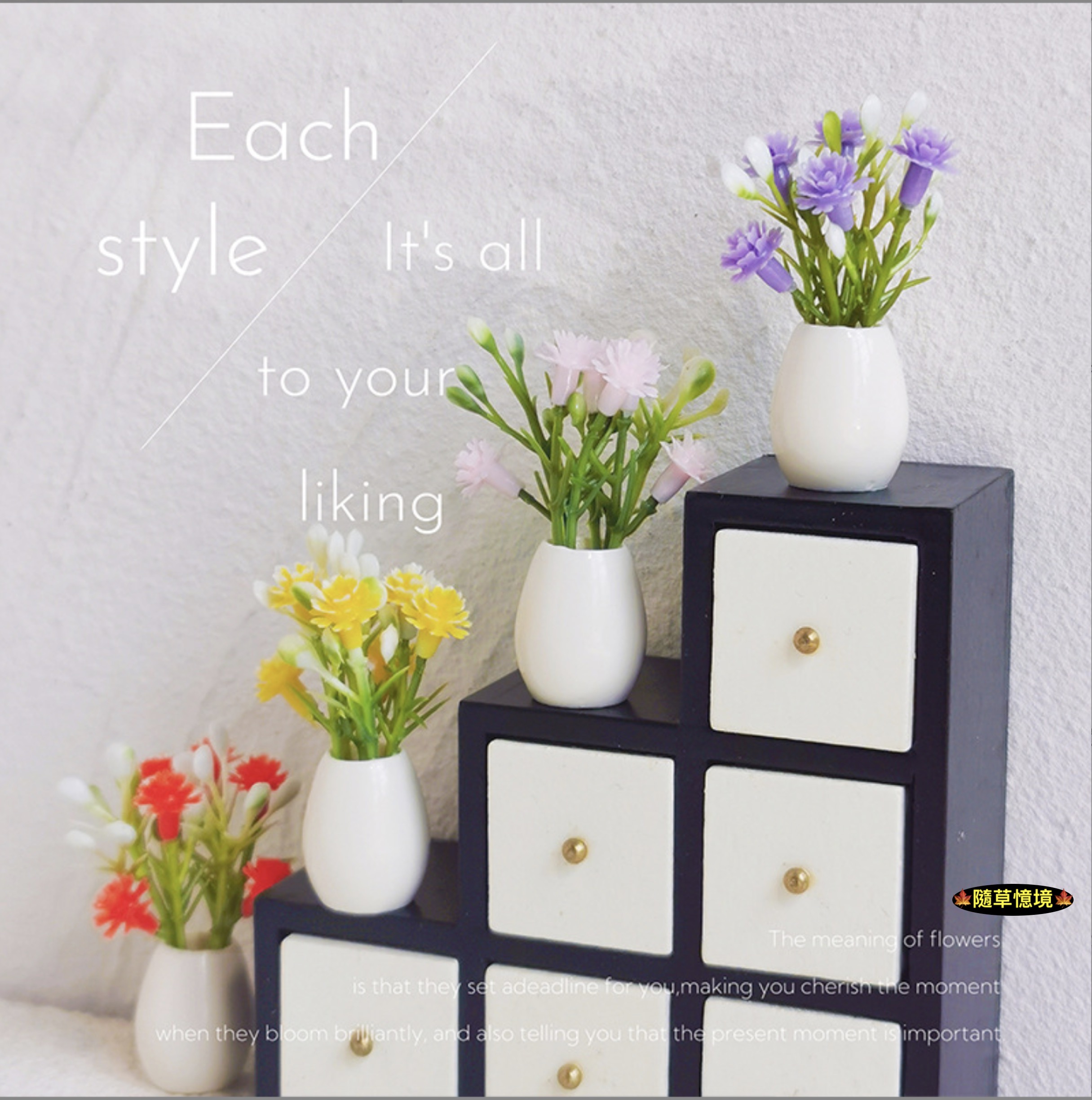 (4色)迷你仿真 桌花 花束 盆栽 花瓶 K526 裝飾擺設 娃娃屋 袖珍 微縮 食玩 微景觀 模型