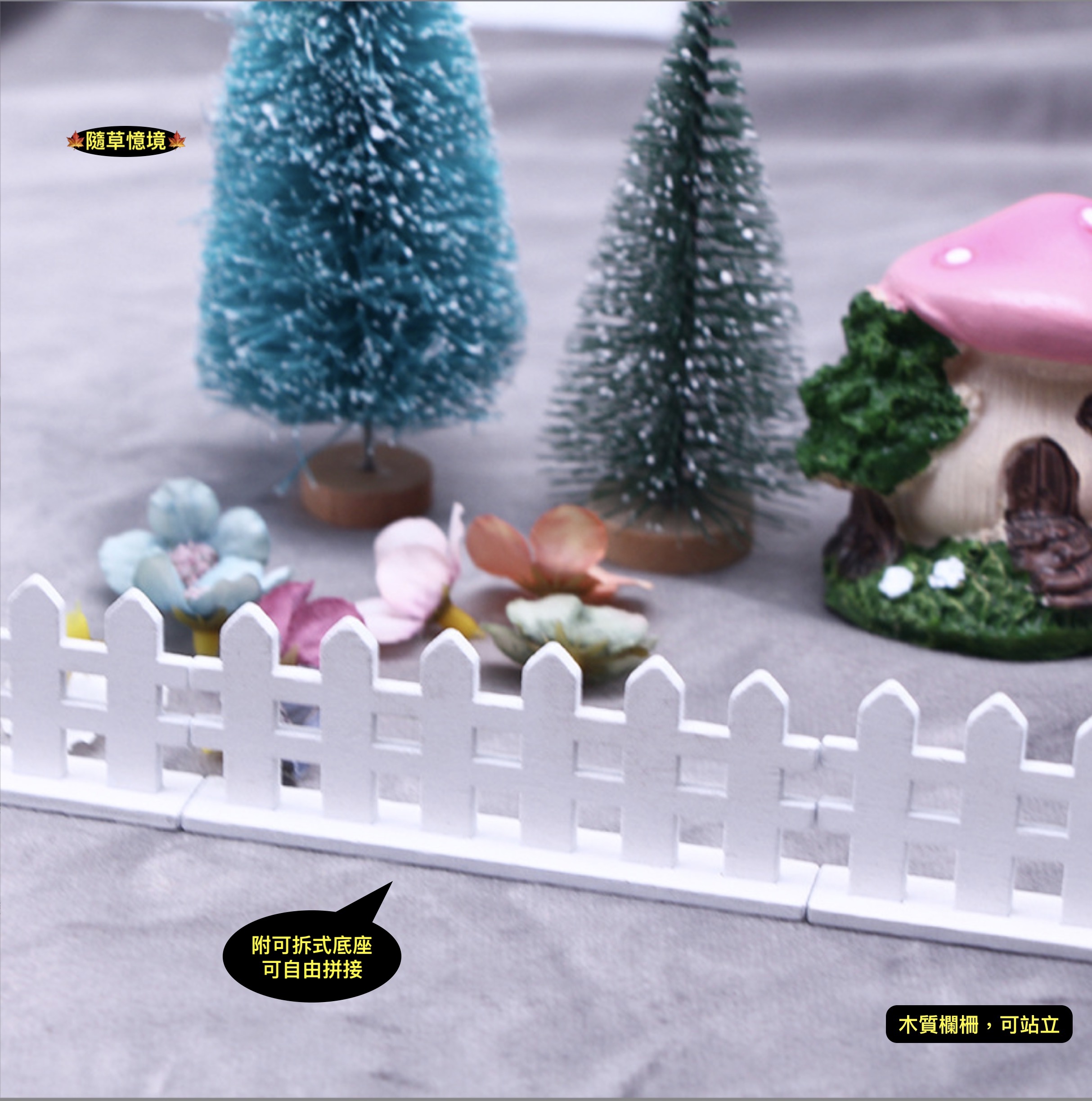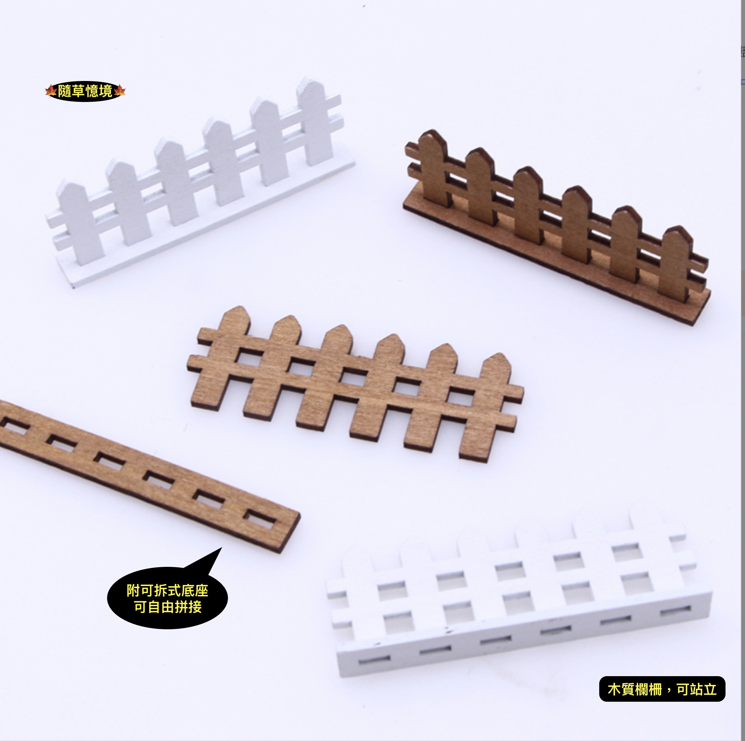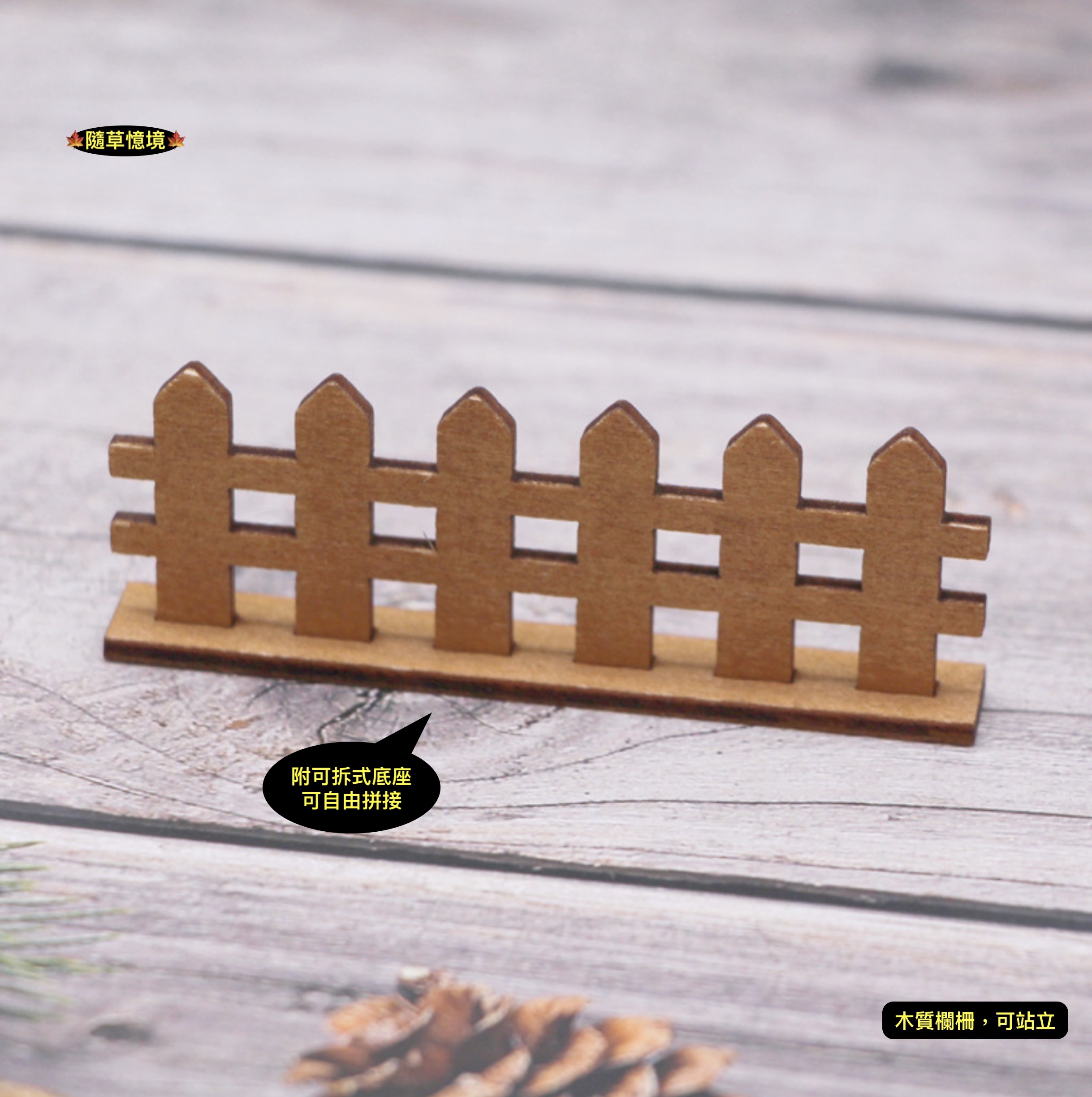 (可拆式底座)迷你 木質 柵欄 圍欄 木柵 圍牆 微景觀 園藝 裝飾 模型 配件 微縮 場景 娃娃屋