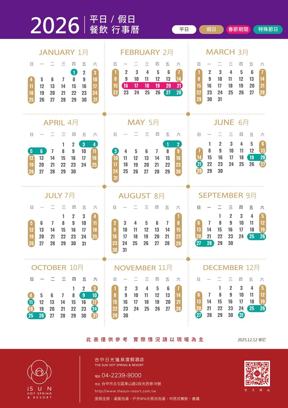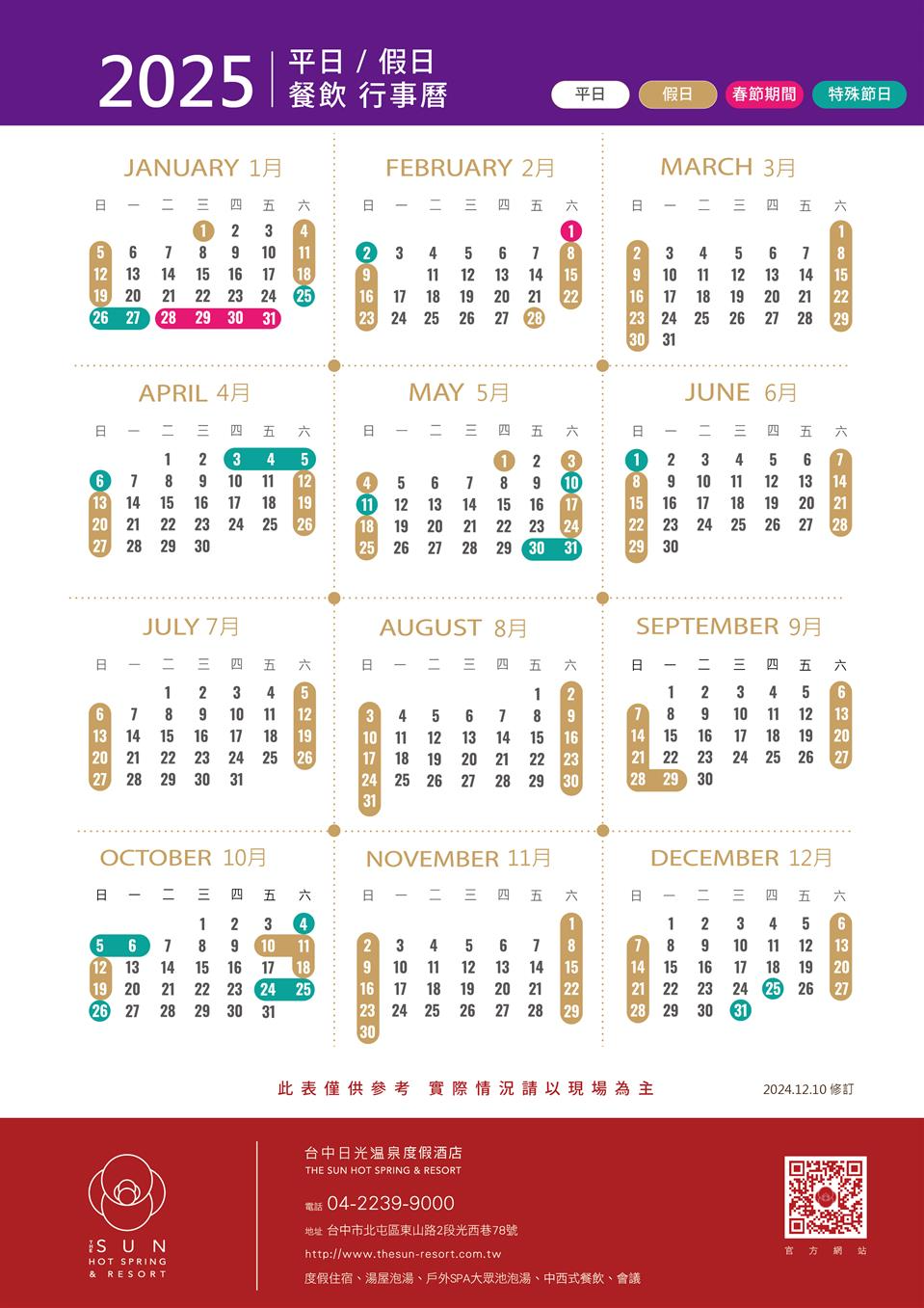 餐券部分2025秋季旅展更改為平/假日券,於一般假日使用不須加價