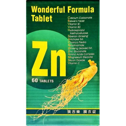 品牌 : 凌統 產品名稱 : 美吉樂膜衣錠(60粒/瓶) 容量/規格:60粒/盒 成分 : 人參葉萃取、珍珠草萃取、朝險記萃取、維生素B2、碳酸鈣、啤酒酵母粉、維生素B1、刺五加萃取、葡萄糖酸鋅、維生素C 營養標示 : 如圖所示 用法 : 一天一粒 產地:台灣 貨源:公司貨 效期 : 2年內 本品已投保產物保險