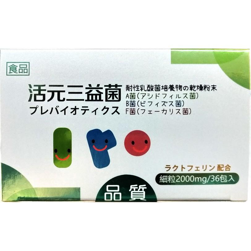 商品名稱:活元三益菌 成分 : 益生菌 容量規格 : 36粒/盒 營養標示 : 如圖所示 用法 : 一天1-2次 產地 : 台灣 效期 : 2年內 貨源 : 公司貨