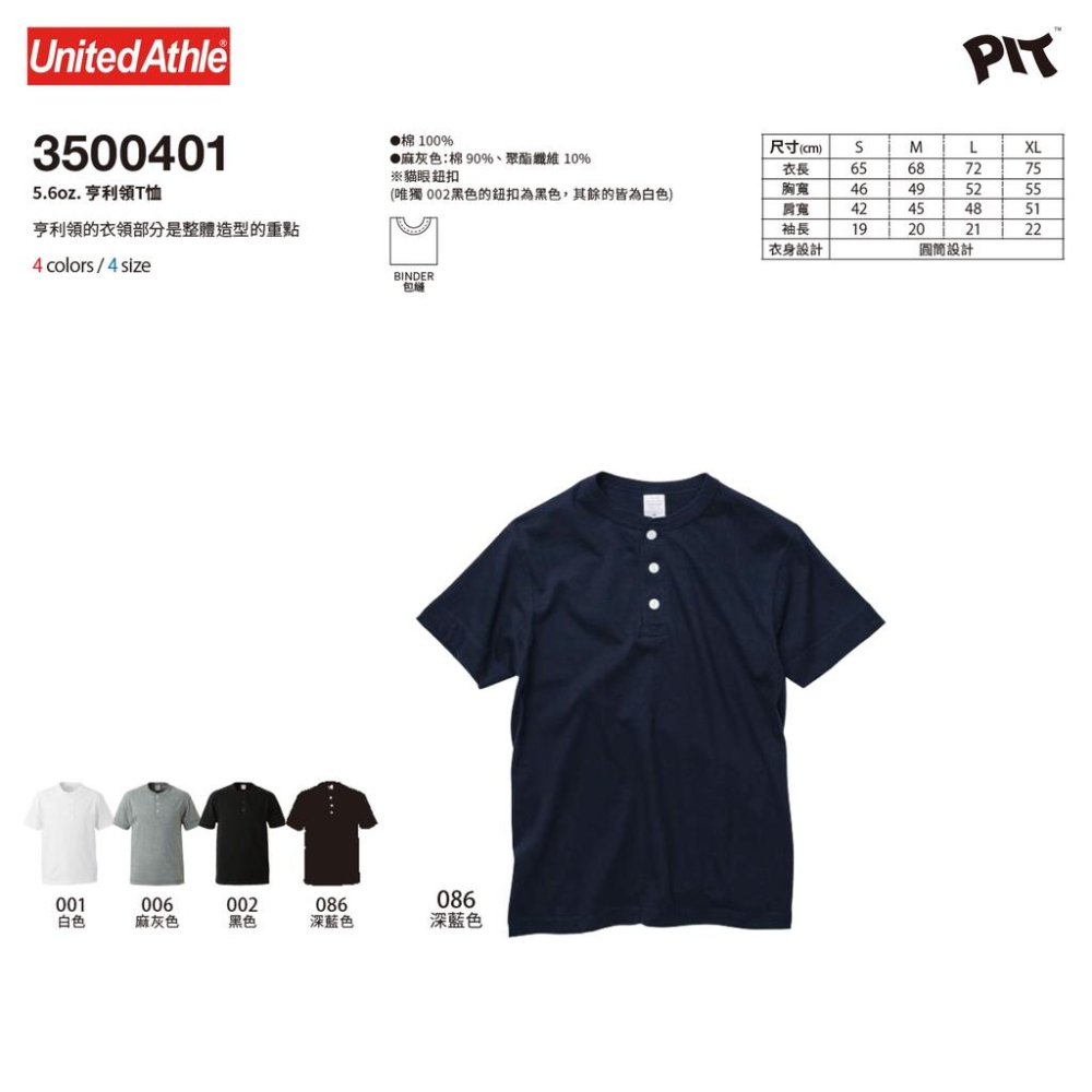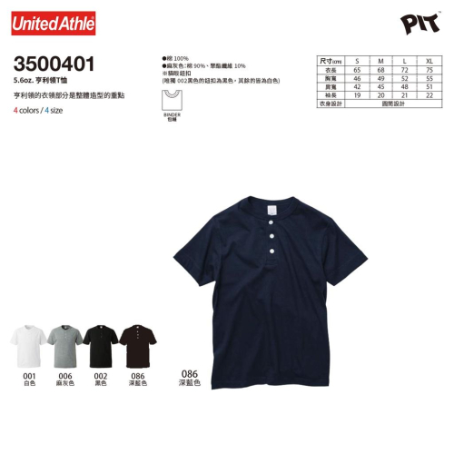 [免運]4色 日本 United Athle 5.6oz 亨利領素T UA 中磅 素色短T 素面T恤 Tee 35004