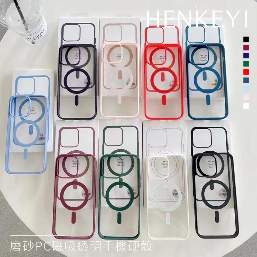 Magsafe磁吸素色邊框透明殼 適合蘋果12~15 磁吸手機殼 透明素面保護殼 蘋果手機殼
