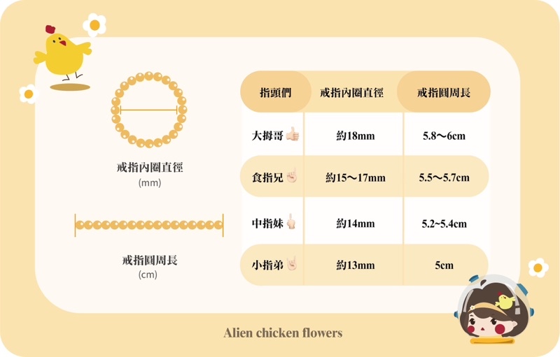 (怕尺寸太大或太小的外星雞顧客們可以測量手圍一圈大小 下單備註一下合適的尺寸就可以嚕🌬️)