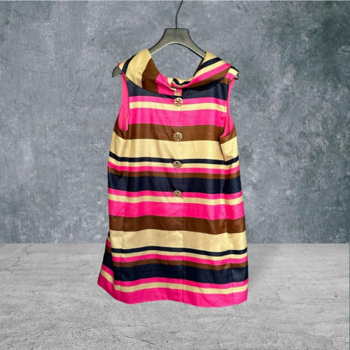 二手 TORYBURCH美國時尚大牌 桃咖藍 九成五新 真絲條紋翻領金扣長版6號 背心 VA1105﹝凡賽蘇﹞
