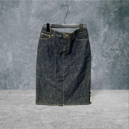 二手 D&G 義大利製 藍黃 九成三新 低腰原色單寧虎紋後開衩狂野獵裝44號 牛仔 短裙 VA1004﹝凡賽蘇﹞