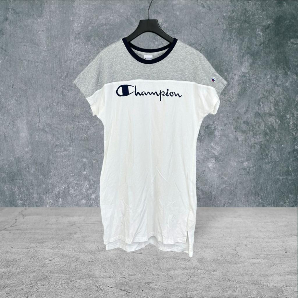 二手 CHAMPION 灰白 復古彈性棉麻連身長版下擺兩側開衩LARGE 短袖 洋裝 VA809﹝凡賽蘇﹞