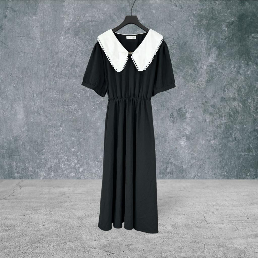 二手 Puffs韓國品牌 大碼可哥德式大領蓬袖彈性腰圍長洋 禁慾修道院十三號星期五 短袖 洋裝 VA512 ﹝凡賽蘇﹞