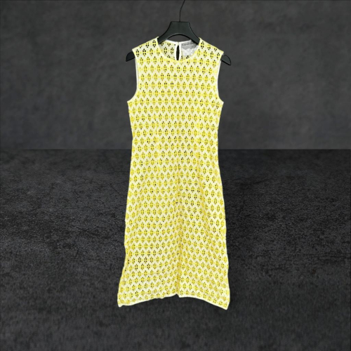 二手 SPORTMAX 義大利製 黃白 鏤空繡花棉彈性 無袖 洋裝 VA804 ﹝凡賽蘇﹞