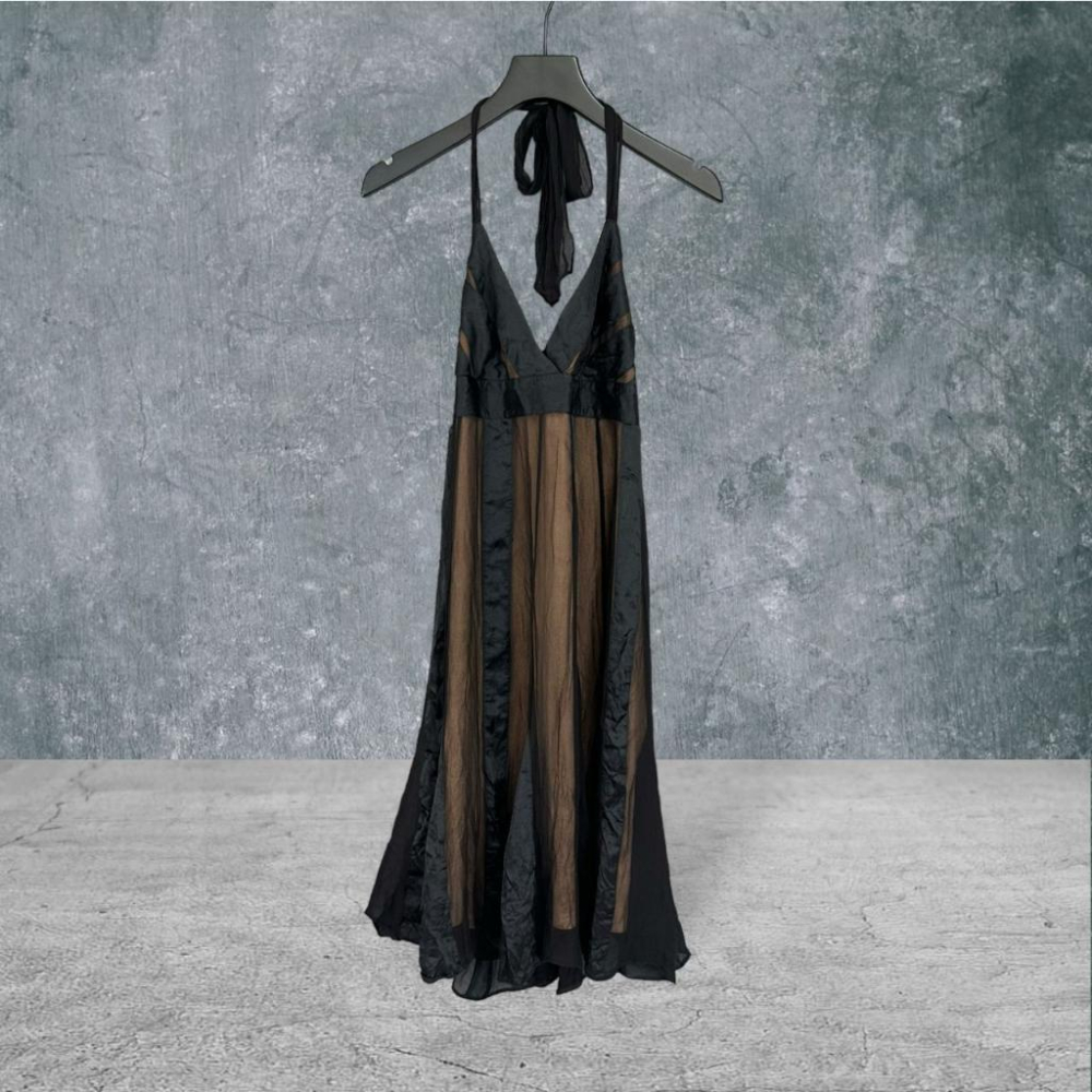 二手 BCBG 黑色真絲綁帶繞頸透色微彈 無袖 洋裝 VA804 ﹝凡賽蘇﹞