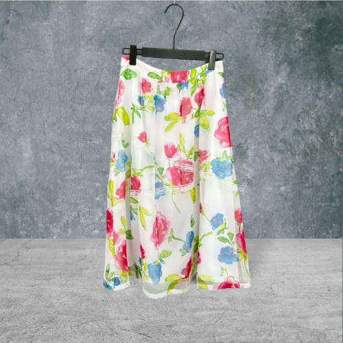 二手 MYSHEROS蜜雪兒 白紅 細緻網紗印花玫瑰A字仙女裙 長裙 VA723﹝凡賽蘇﹞