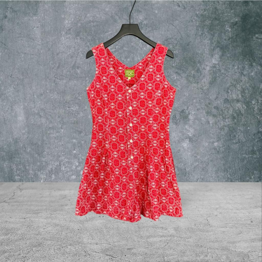 二手 ESPRIT EDC 香港製 紅 棉麻佩利斯花紋前開扣腰身短褲M 無袖 連身褲 VA712﹝凡賽蘇﹞