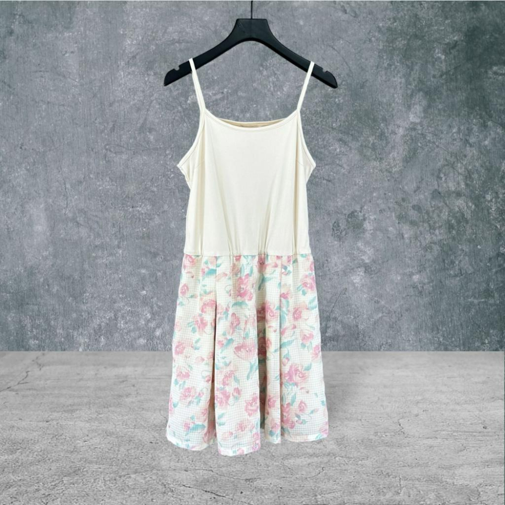 二手 0918 米粉 彈性細肩帶拼接格紋雪紡玫瑰蓬裙假兩件 無袖 洋裝 VA615 ﹝凡賽蘇﹞