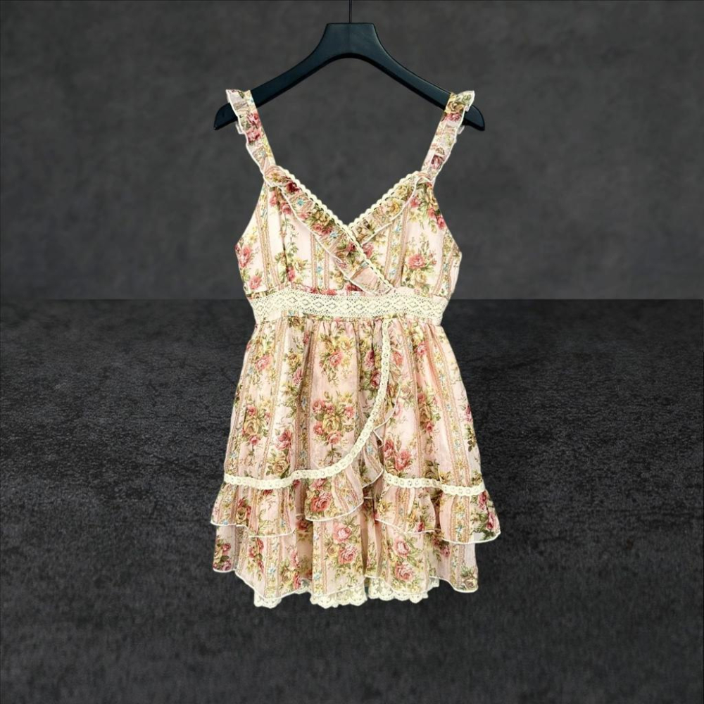 二手 LISA 粉紅 雪紡碎花玫瑰細肩帶蓬裙蘿莉塔 無袖 洋裝 VA703﹝凡賽蘇﹞
