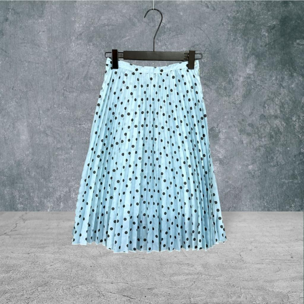 二手 KONJIN 湖水藍 光澤緞面波點壓褶過膝百褶裙 愛麗絲夢遊仙境 長裙 VA520 ﹝凡賽蘇﹞