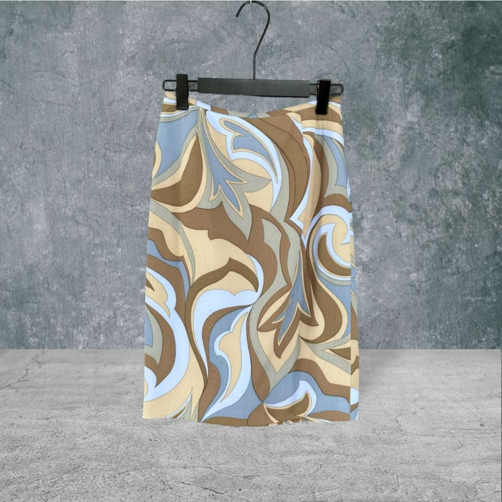 二手 NATURAL BEAUTY 日本製 咖啡藍 佩利斯花紋彈性棉過膝窄裙 長裙 VA520 ﹝凡賽蘇﹞