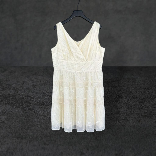 二手 LOVE FIELD 米白 網紗銀線印花V領層次裙擺 無袖 洋裝 VA505 ﹝凡賽蘇﹞