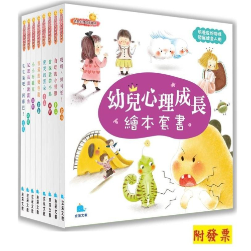 規格:精裝 / 30頁 / 23 x 23 x 1 cm / 普通級 / 全彩印刷 / 初版 出版地:台灣 適讀年齡:3歲~8歲 <哎呀﹐好可怕!:認清恐懼不害怕> 當自己一個人的時候,   黑暗、影子、風聲、床底下,   都讓人覺得害怕極了!   但在看清楚自己的「害怕」之後,   「害怕」變成了……   可愛的小黑貓、趣味的影子遊戲、生意好的雷神爺爺燒烤店……   原來,很多事情其實也沒那麼可怕嘛! <貪吃的小怪獸:一起分享不貪心> 小怪獸一口口的把喜歡的綠地、小山、太陽、月亮、小河……   全都吞進肚子裡了,   他摸一摸自己沉甸甸的肚子,好開心,   他想找人一起玩,但朋友卻都不見了!   面對周圍一片的寂靜,他的心突然感覺空空的,   他找不到可以分享的朋友了。   後悔的小怪獸會怎麼做呢? <愛哭的雲朵:想法轉轉不委屈> 天空的雲朵只是想舒服的晒晒太陽,   但卻引來人們埋怨的聲音,為什麼呢?   面對莫名的敵意,委屈的雲朵,哭了……   當雲朵停止哭泣後,   雲朵聽見了不一樣的聲音。   原來她滴滴答答的眼淚雨,   有好多人是感謝的。 <害羞的變色龍:勇敢自信不害羞> 變色龍伯尼因為害羞會臉紅,很容易就被發現,   媽媽幫伯尼想了好多辦法,   如深呼吸、幫自己打氣、找出自己熟悉的東西、看看大家的笑臉……等,   但伯尼害羞臉紅的情況還是沒改善,   害羞臉紅的情況會讓伯尼遇到危險嗎?   伯尼可以幫自己找到方法嗎?? <尼恩長出"說謊角":誠實面對不說謊> 尼恩對媽媽說了一個謊話,   隔天頭上竟長出一對角,   為了不讓媽媽發現,尼恩說了第二個、第三個、第四個謊話,   頭上的角也飛快地往上長,   眼看雙角都長到撞破天花板了,   尼恩會選擇誠實面對嗎?   還是再說出下一個謊話呢? <小小布羅克:喜歡自己不自卑> 布羅克是個有愛心、懂禮貌,唱歌又好聽的小男孩,   但大家都只注意他的「身高」,   漸漸的,布羅克越來越自卑、離大家也越來越遠,   直到佩森奶奶的出現,一切都改變了!   他們一起看書、躲貓貓、拼圖、洗貓咪......,布羅克好開心。   有自信的布羅克會走回人群嗎?   布羅克又會如何面對「身高」話題呢?